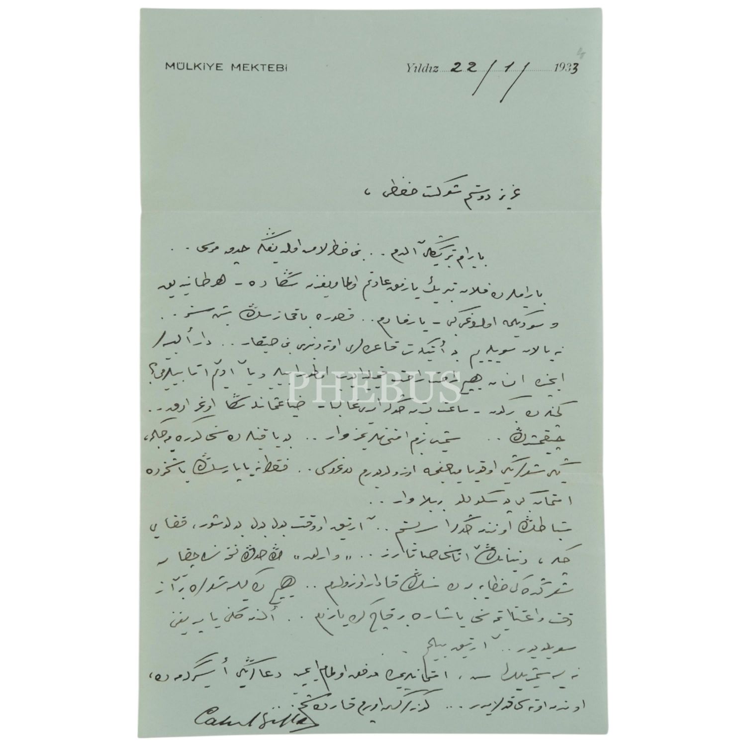 3. Cahit Sıtkı Tarancı´nın, bayramını kutlayan Şevket Rado´ya teşekkür etmek için kaleme aldığı, 22.1.1933 tarihli Osmanlıca mektup...