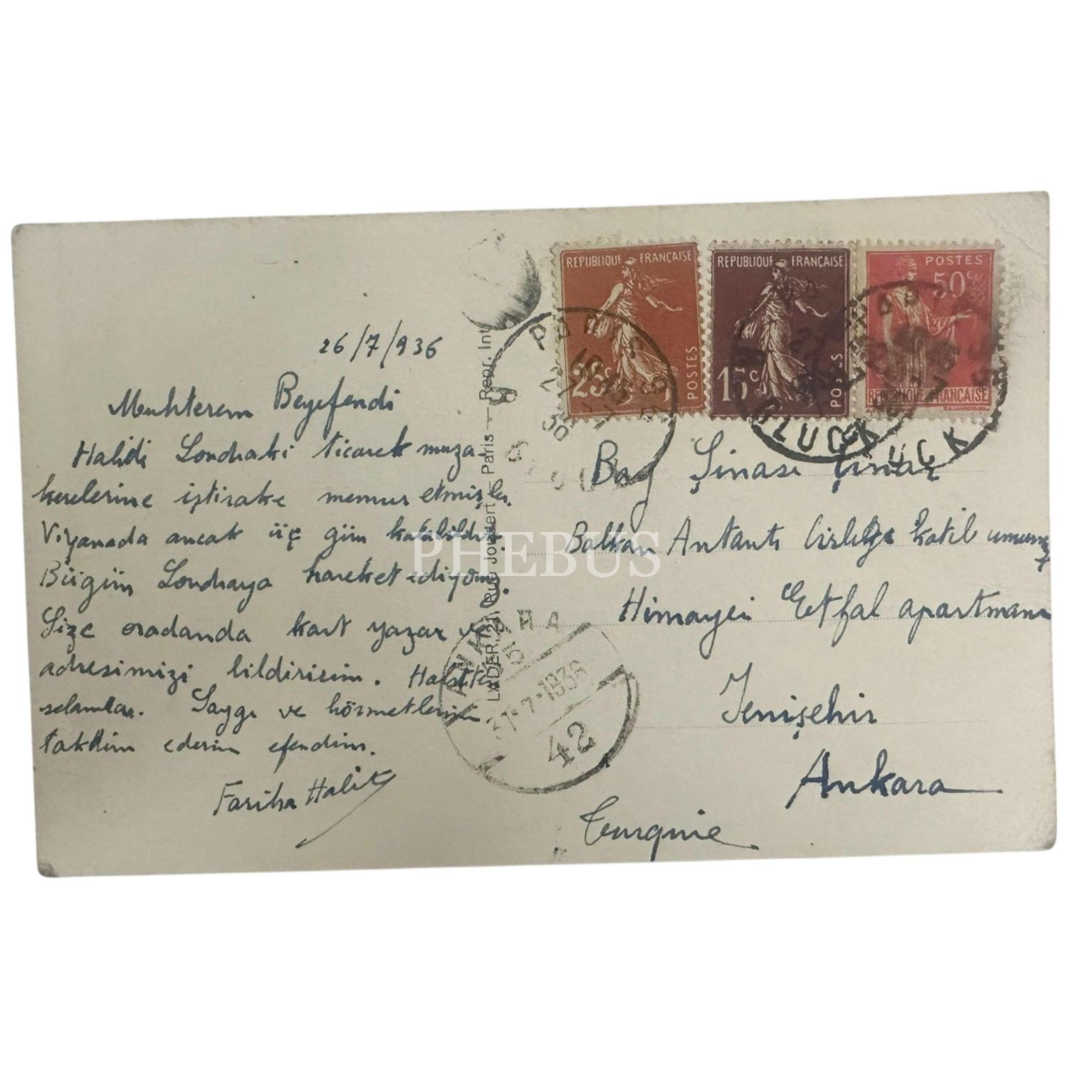 Abdülhak Şinasi Hisar´ın, Balkan Antantı Genel Sekreterliği görevinde bulunduğu sırada, kendisine, aralarında Yakup Kadri Karaosmanoğlu, Reşad Nuri Güntekin, Melek Celal, Reşit Saffet, Ruşen Eşref Ünaydın gibi edebiyatçıların da bulunduğu kişiler tarafından gönderilmiş 51 adet tebrik kartından ve 69 adet boş kartpostaldan oluşan albüm...