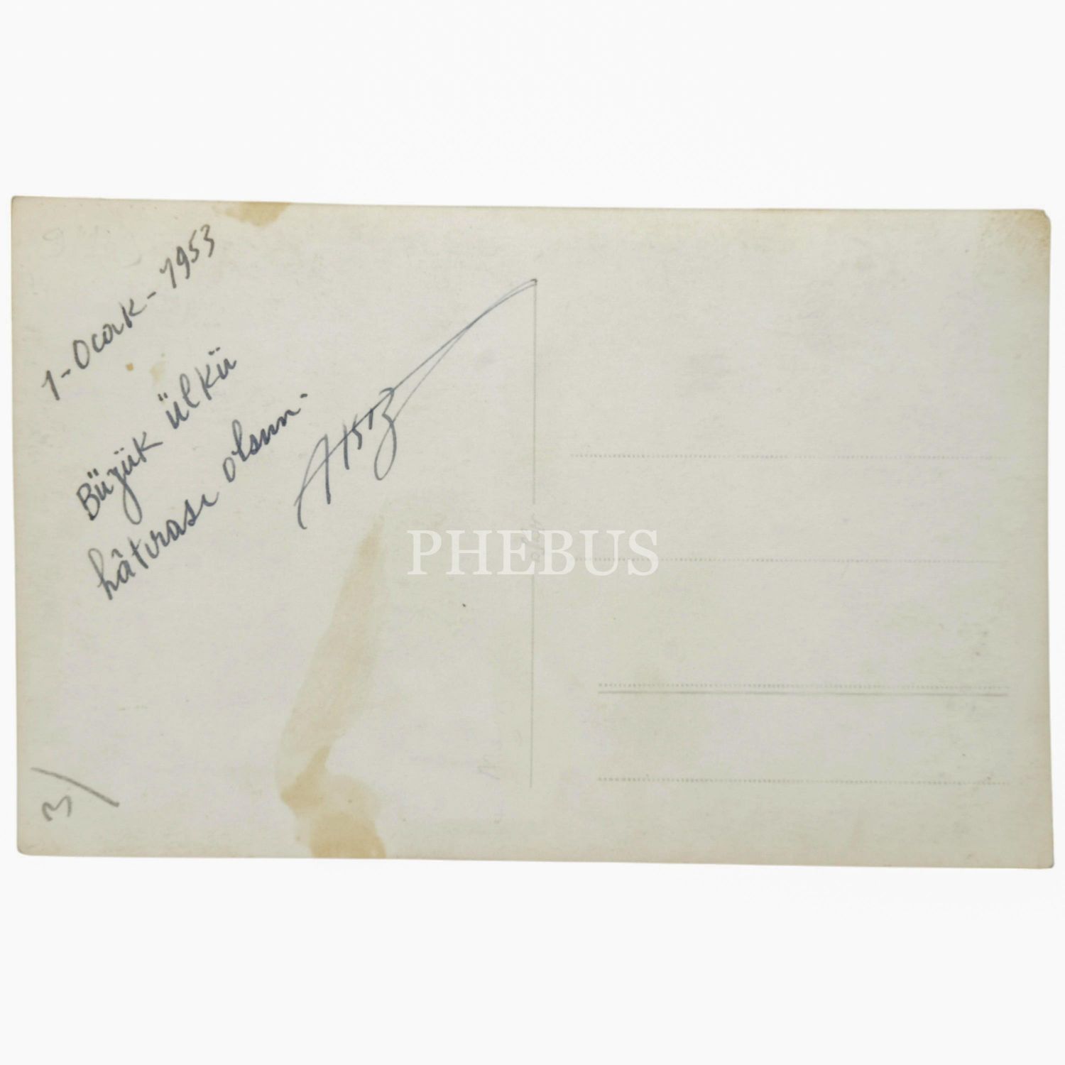 Fotoğraf Nihal Atsız tarafından 1 Ocak 1953 tarihinde "Büyük ülkü hatırası olsun" ithafıyla imzalanmıştır.