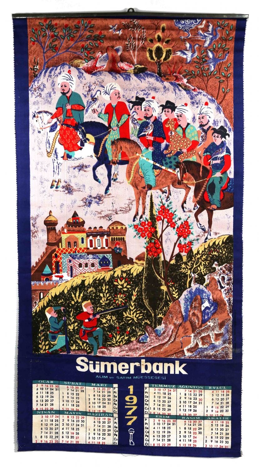 Sümerbank bez 1977 takvim, Osmanlı savaş tasfirli, 41x77 cm