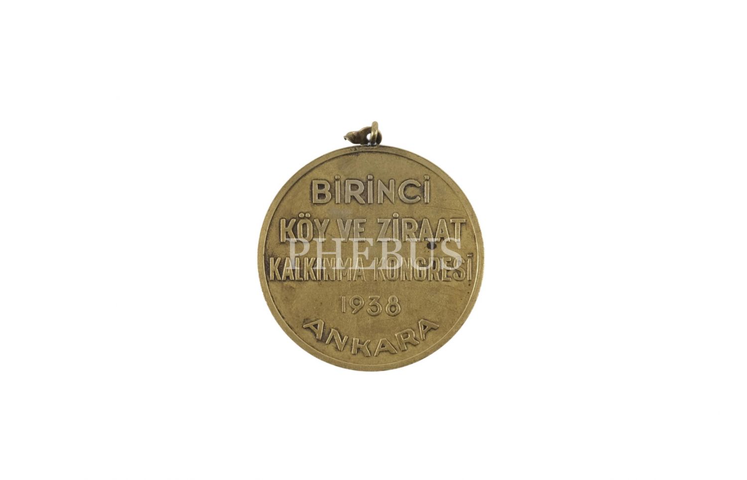 I. Köy ve Ziraat Kalkınma Kongresi madalyanu, 1938, çap 3,5 cm...