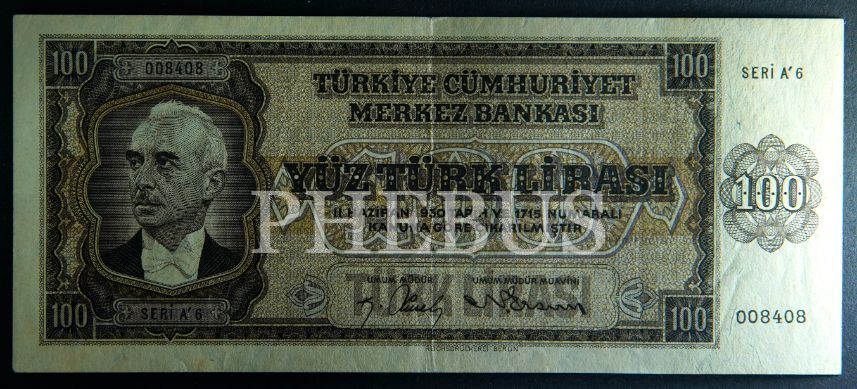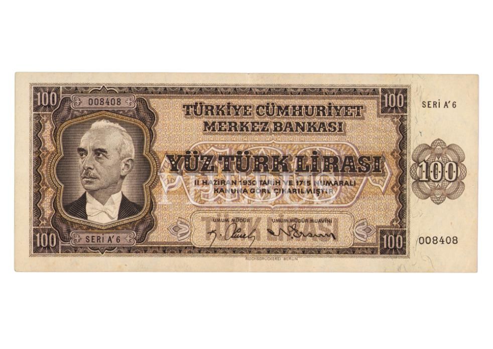 3. Emisyon İnönü - Berlin baskı 100 Lira / Seri A6