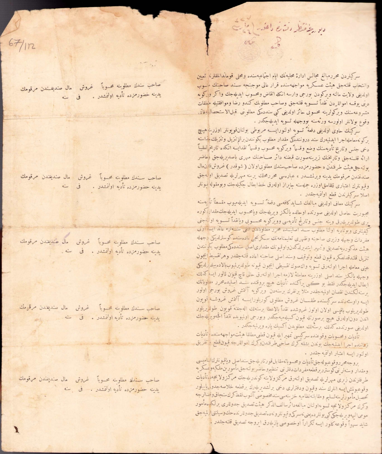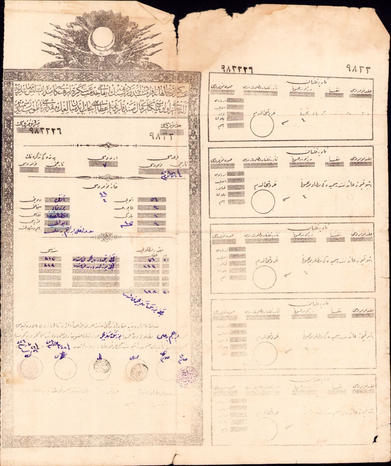 Osmanlı dönemi, askeriyedeki hizmetliye ait maaş senedi, 1326 tarihli, mühürlü, haliyle, 27x33cm