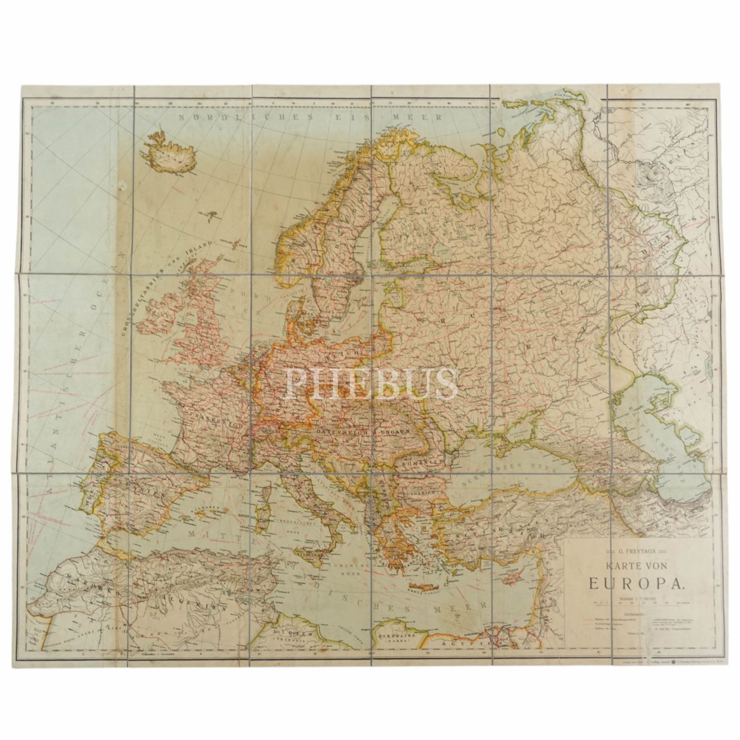 Alman haritacı G. Freytag´ın resmettiği, "Karte von Europa" başlıklı Avrupa haritası, 83x68 cm...