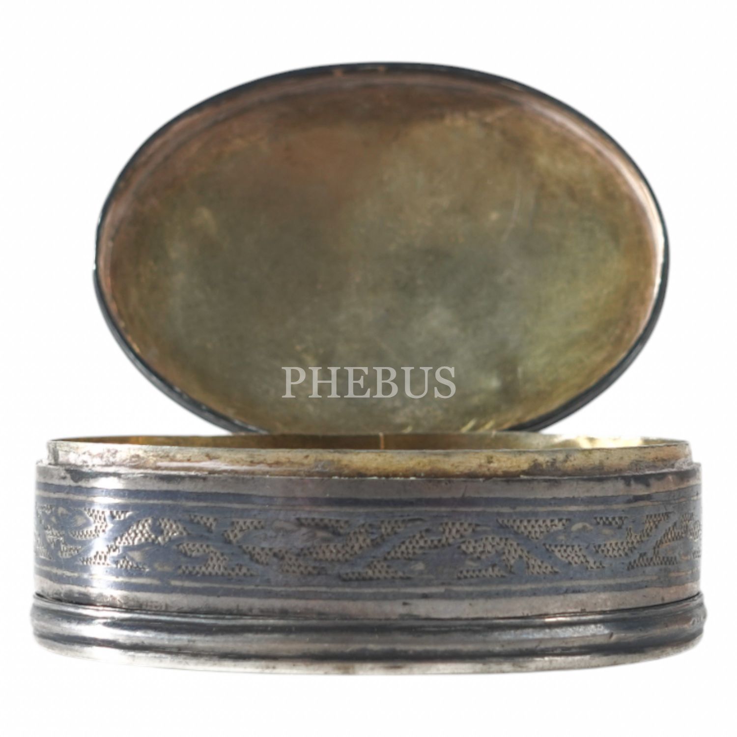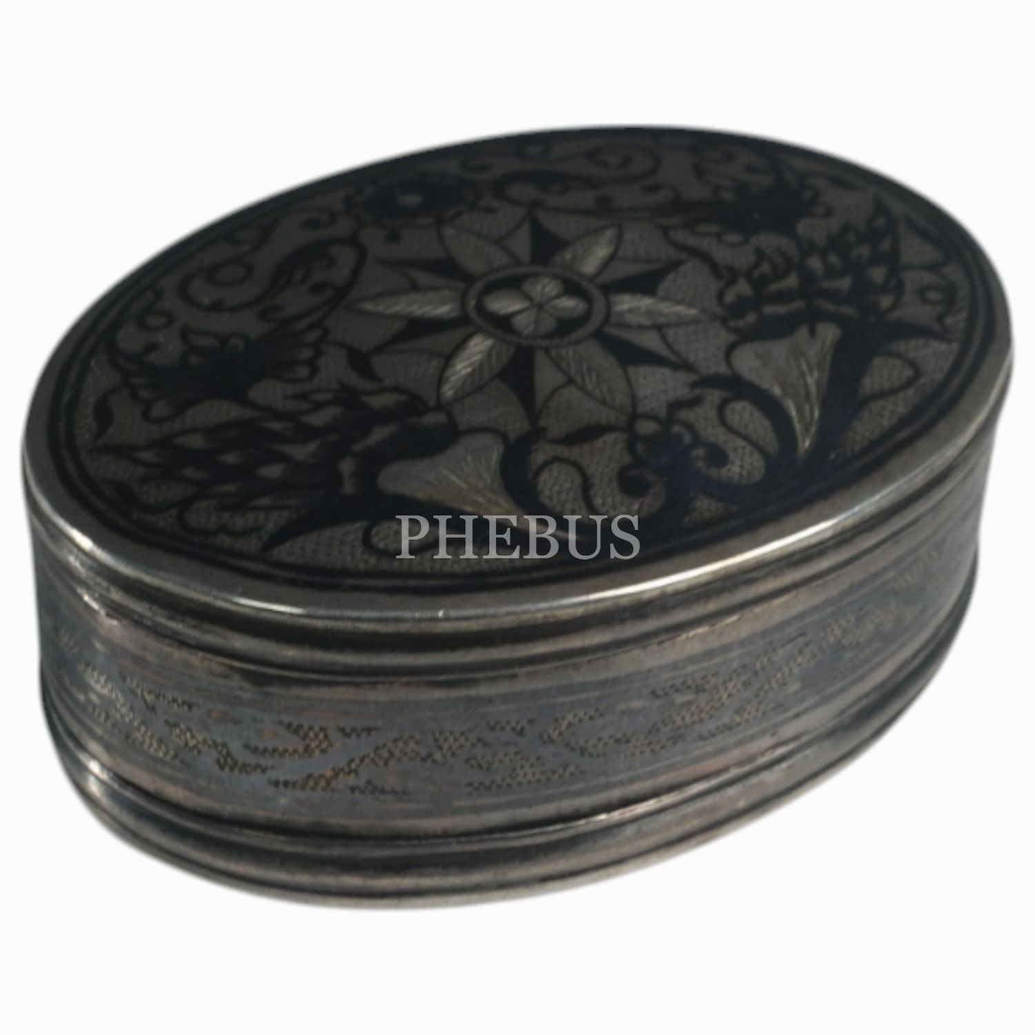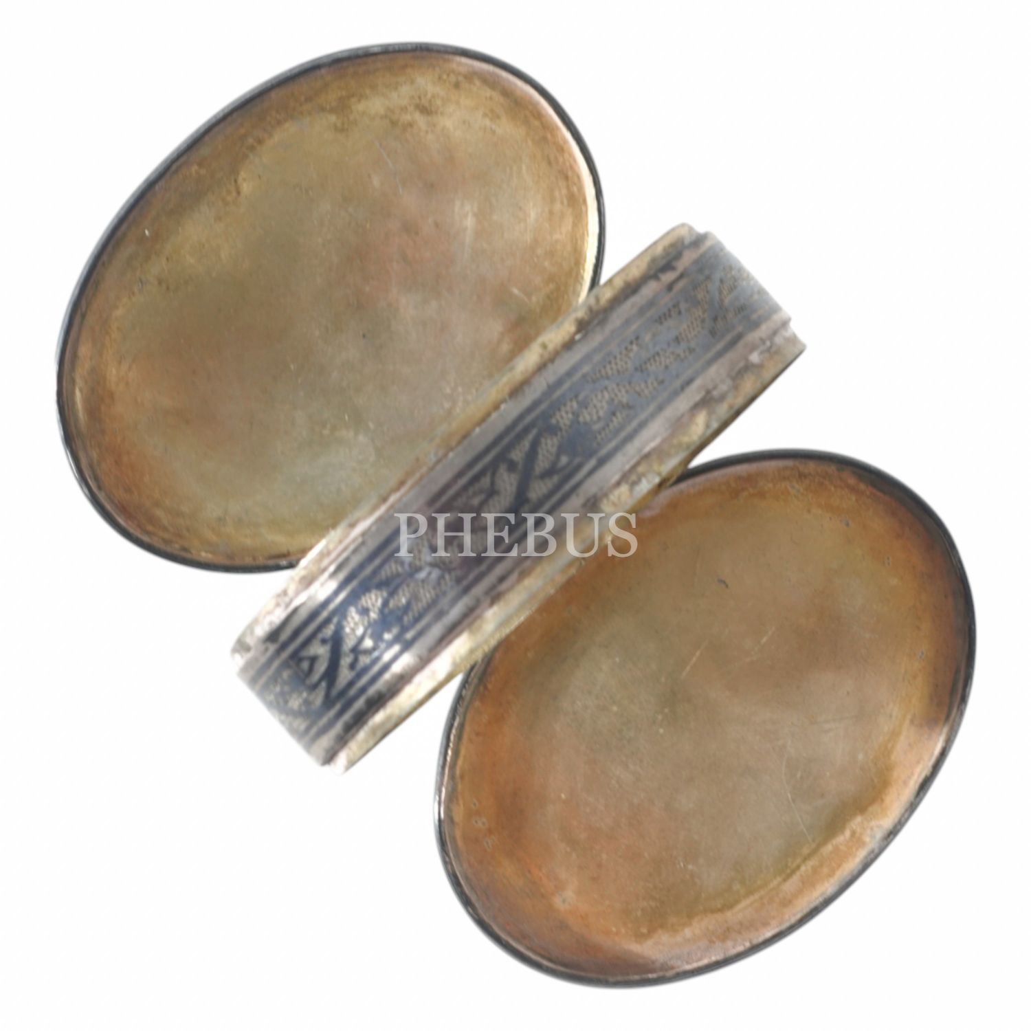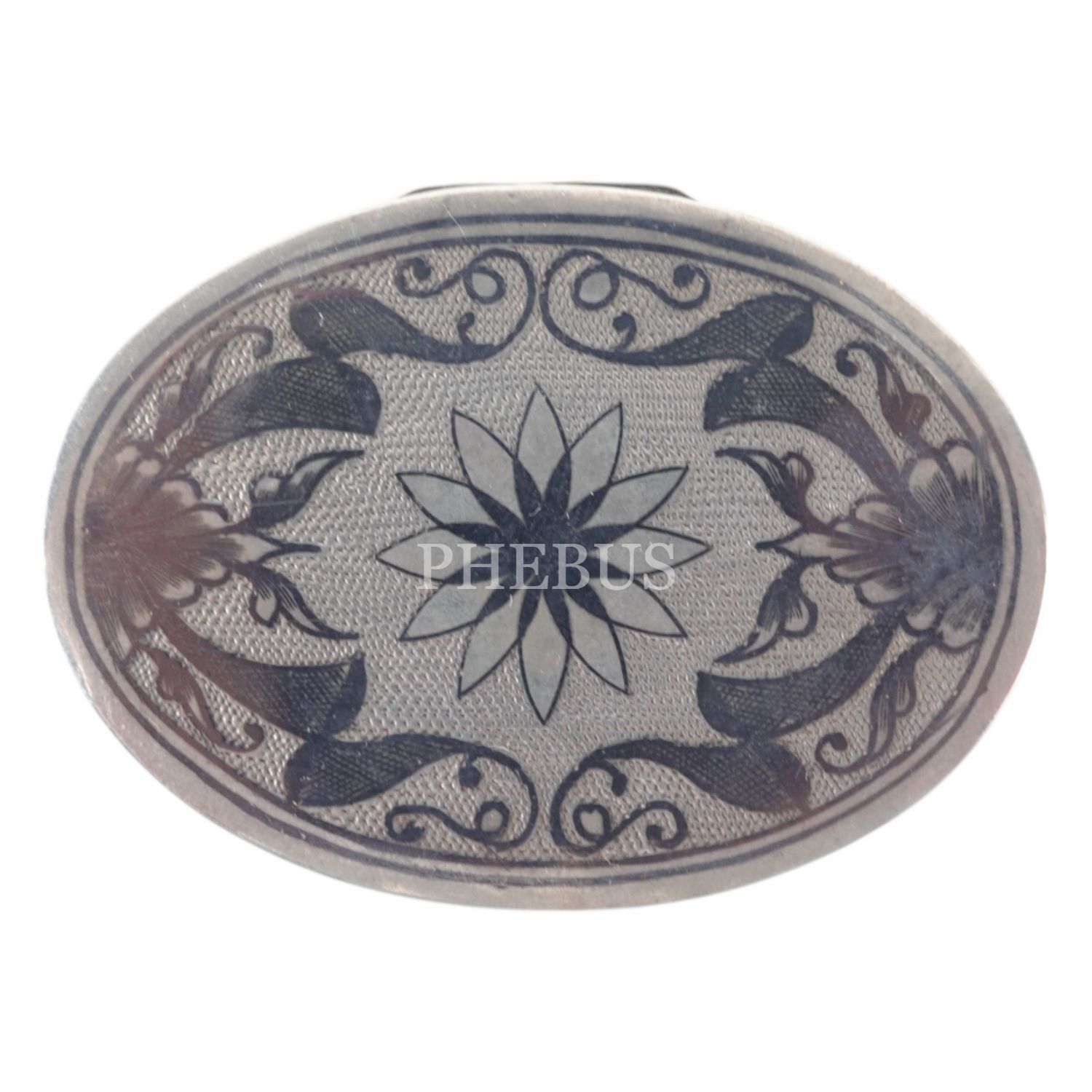 Osmanlı döneminden, savat işçiliğiyle bezeli çift kapaklı gümüş tabaka, 6x2x5 cm, ağırlık 74 gr...
