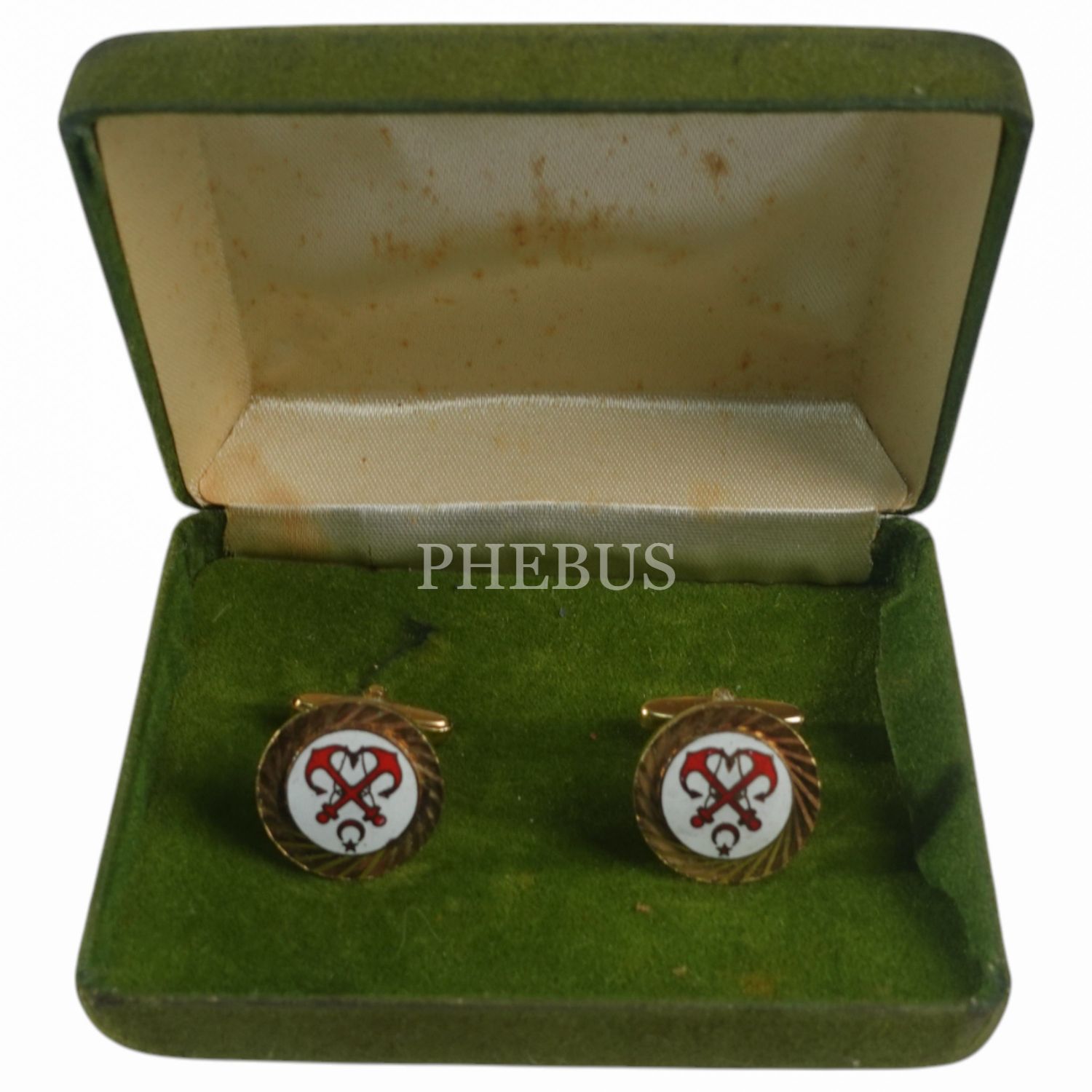Mineli bahriyeli arması ile süslenmiş, orijinal kutusunda kol düğmesi, çap 2 cm...