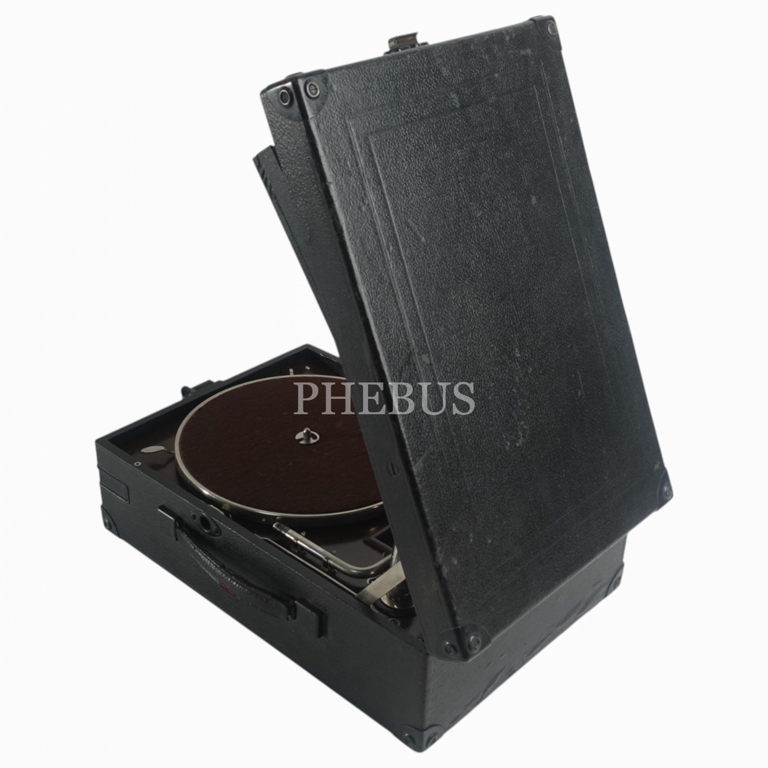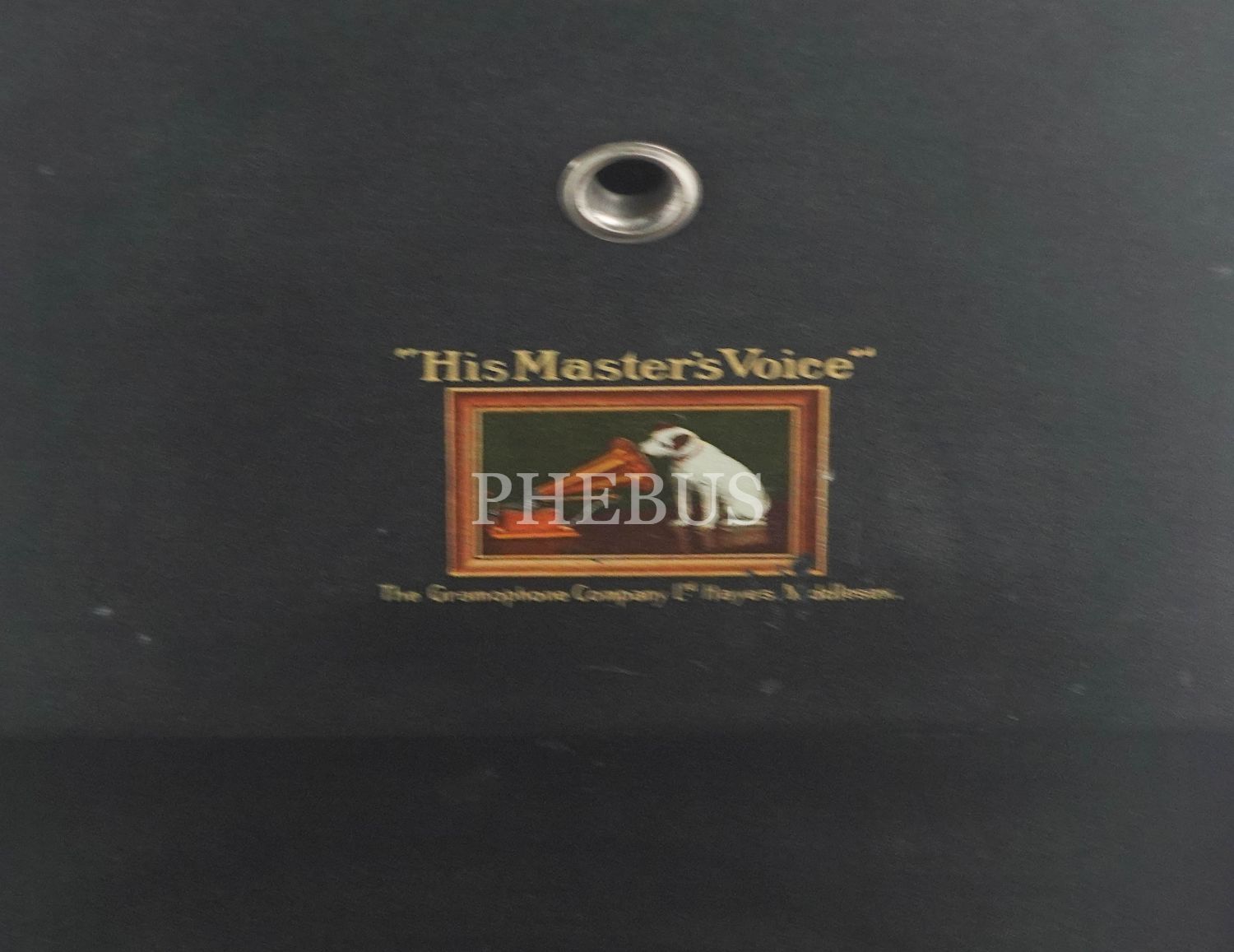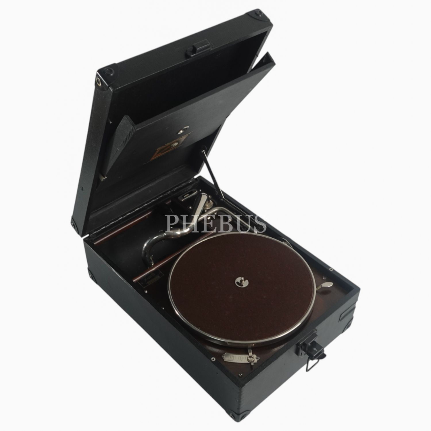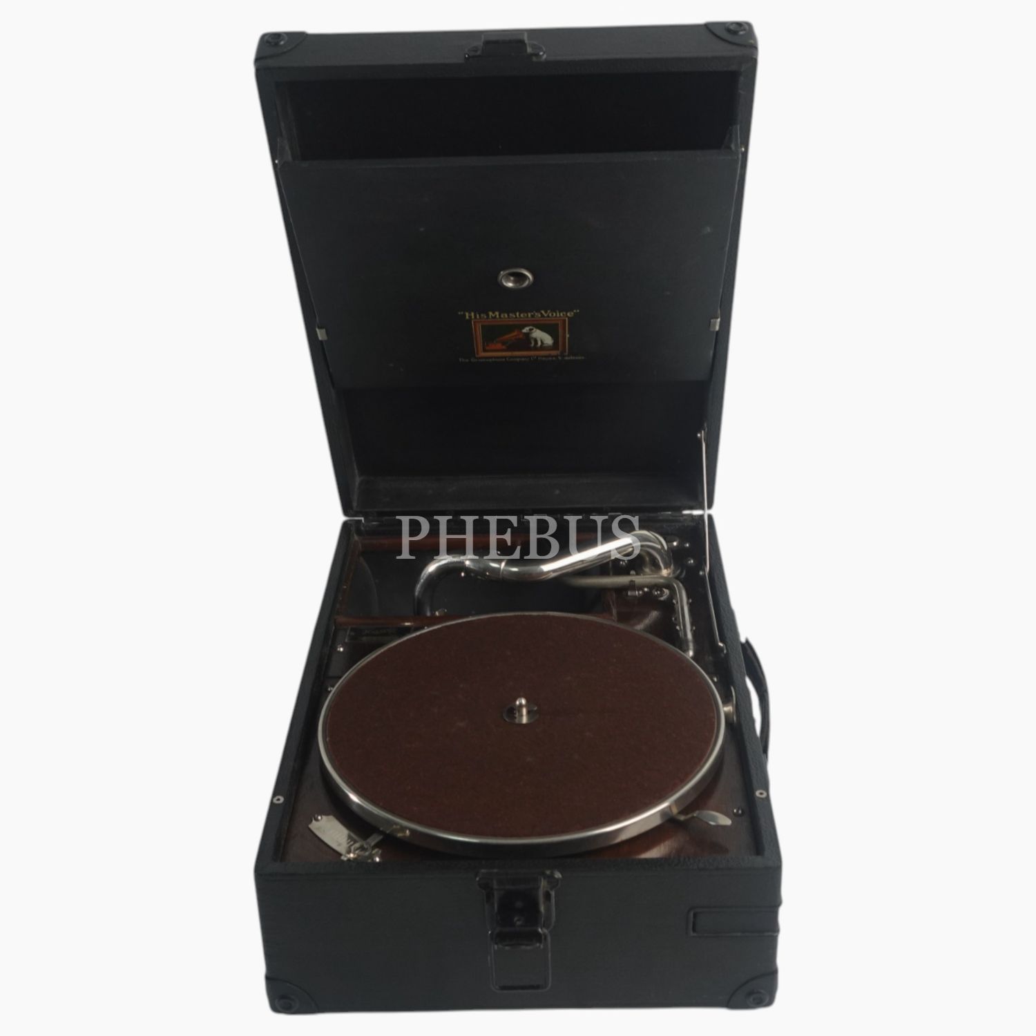 Döneminde Londra'nın meşhur Harrods Mağazası'ndan alınmış, "His Master´s Voice" (Sahibinin Sesi) markasının ürettiği çanta gramofon, 29x41x14 cm...