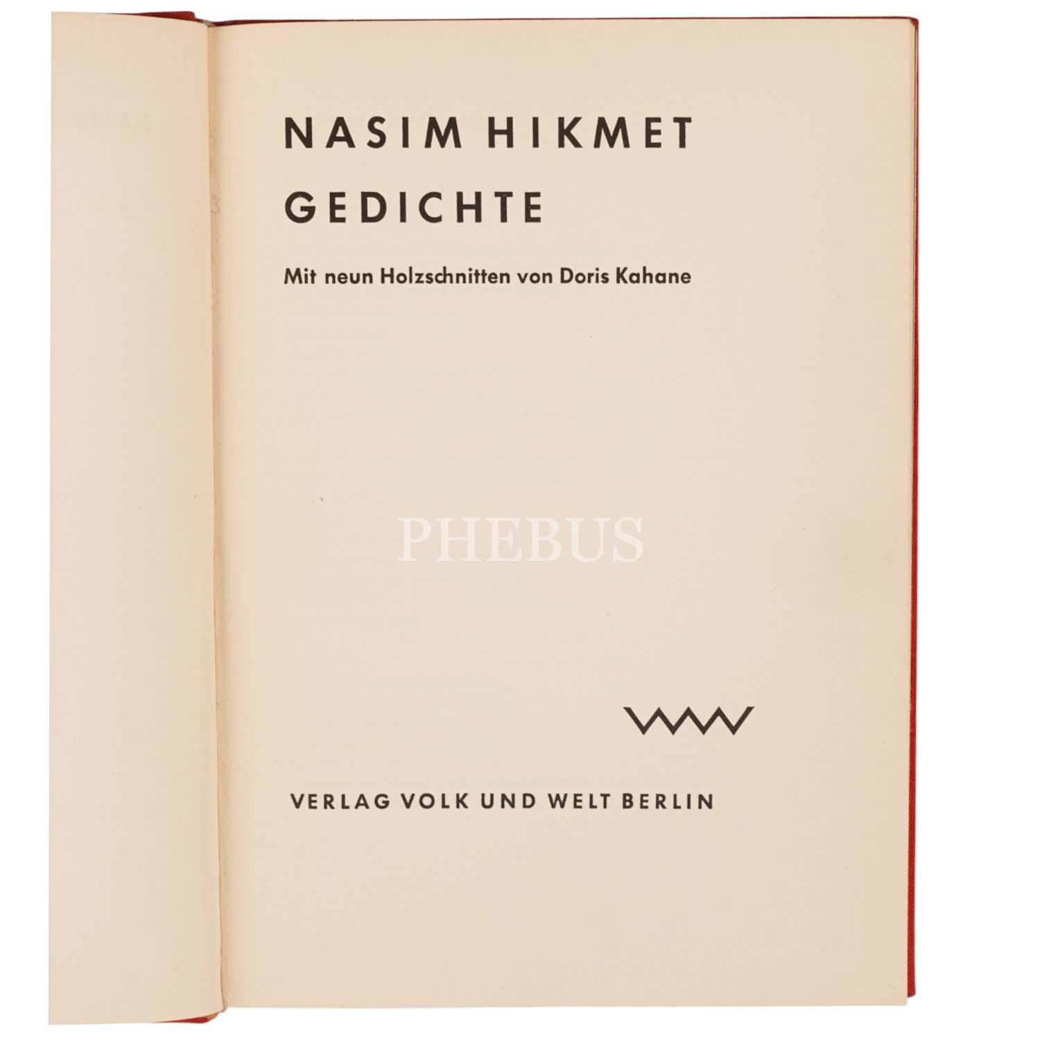 Nâzım Hikmet´in; Ernst Ficher, Paul Wiens, Henryk Kisch gibi ünlü Alman yazar ve şairleri tarafından Almanca´ya tercüme edilen yetmiş iki şiirinden oluşan bu çok özel kitap, ressam Doris Kahane´nin dokuz adet tahta baskısı deseni ile süslenmiştir.