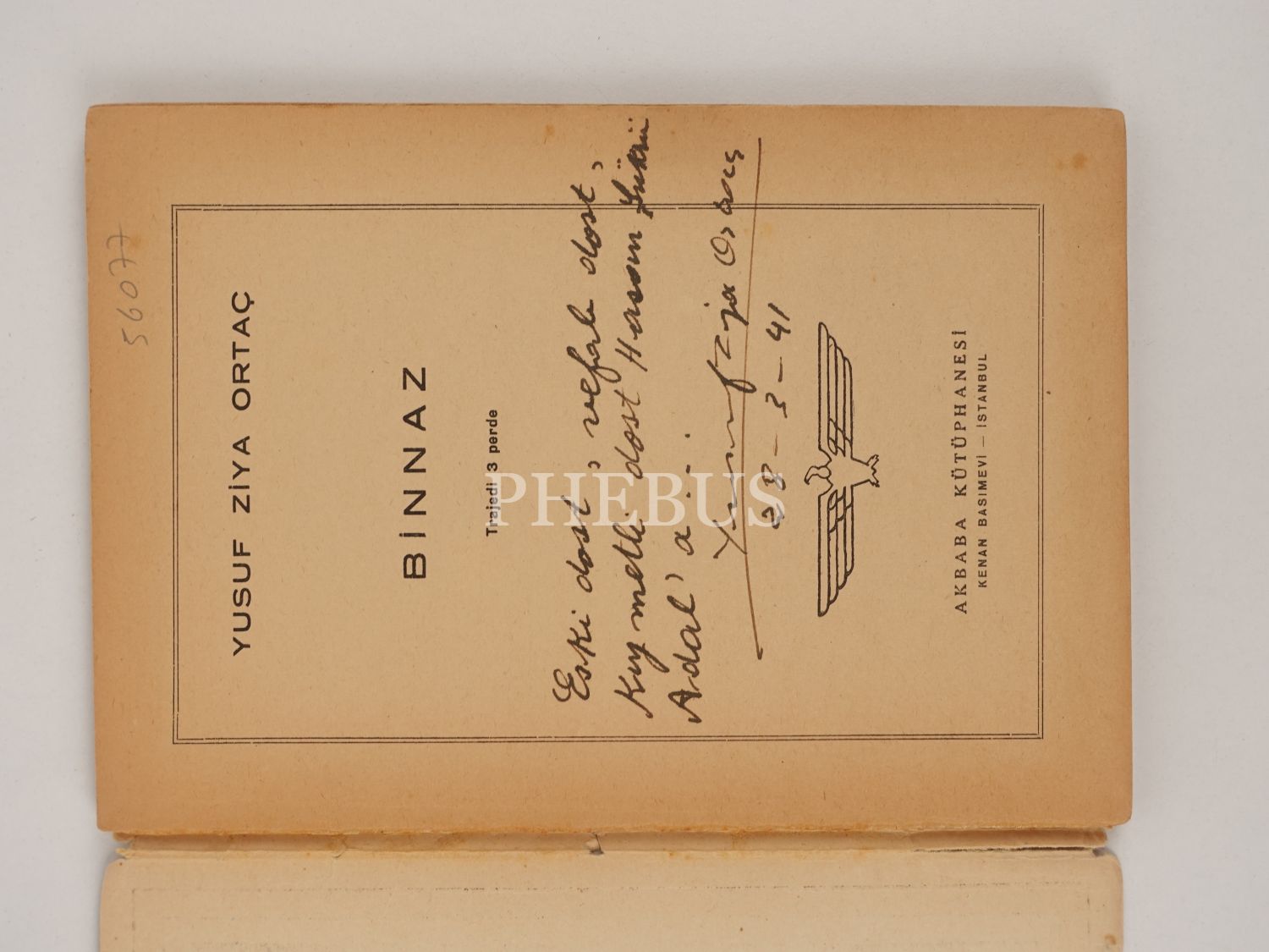 BİNNAZ, Yusuf Ziya Ortaç, 1941, Akbaba Kütüphanesi, 55 sayfa, 14x20 cm...