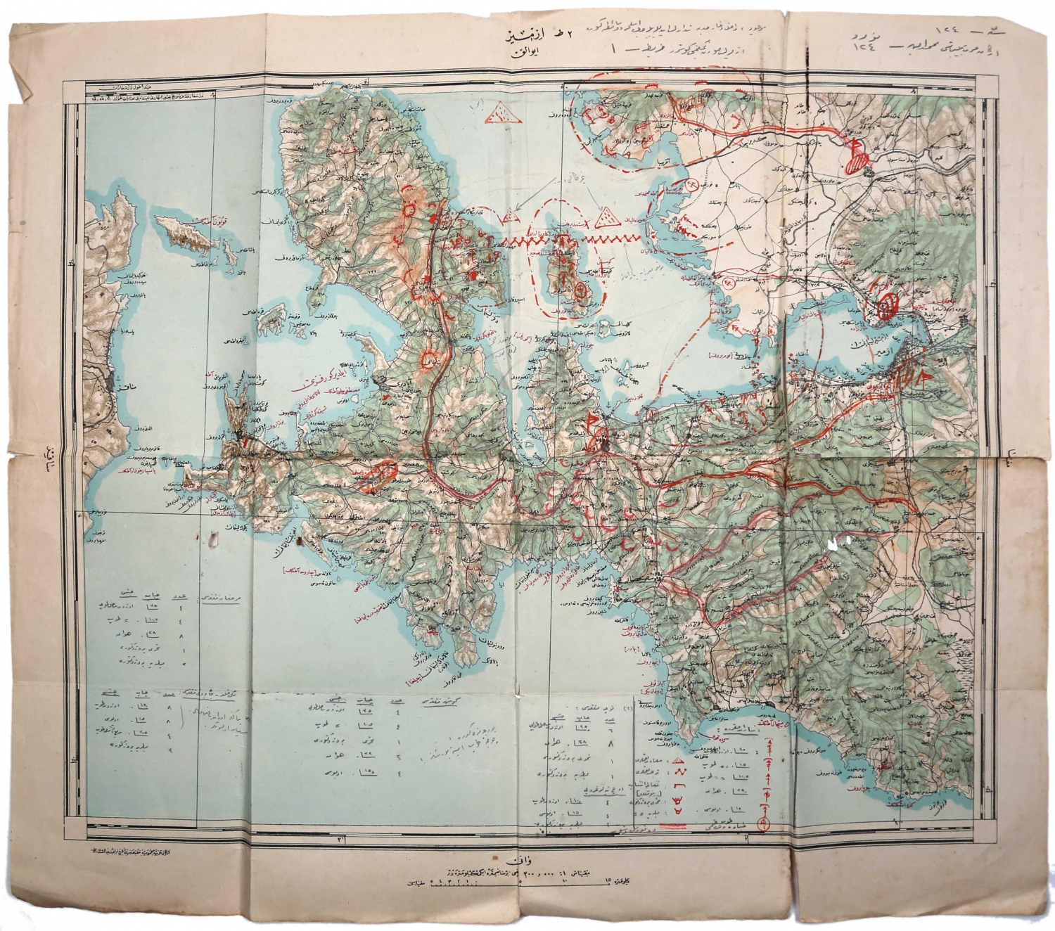 Osmanlıca İzmir haritası, 1328 tarihli, haliyle, 60x50 cm