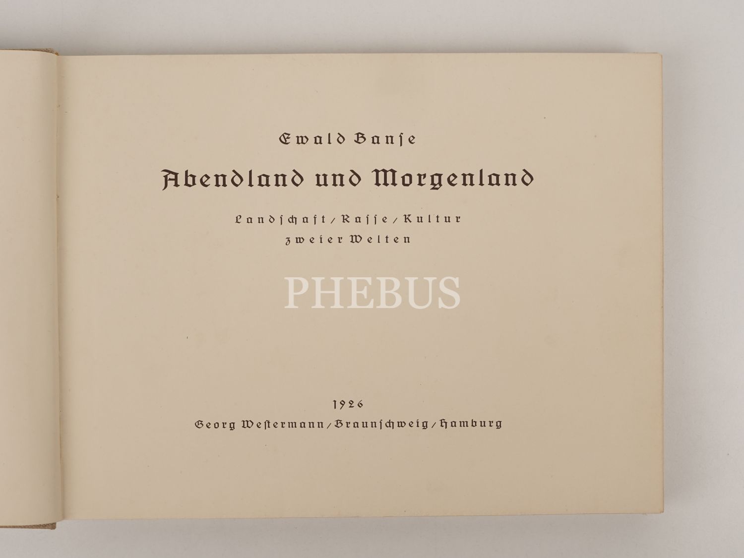ABENDLAND UND MORGENLAND, Ewald Banse, 1926, Georg Westermann Verlag, 284 sayfa, 30x24 cm...