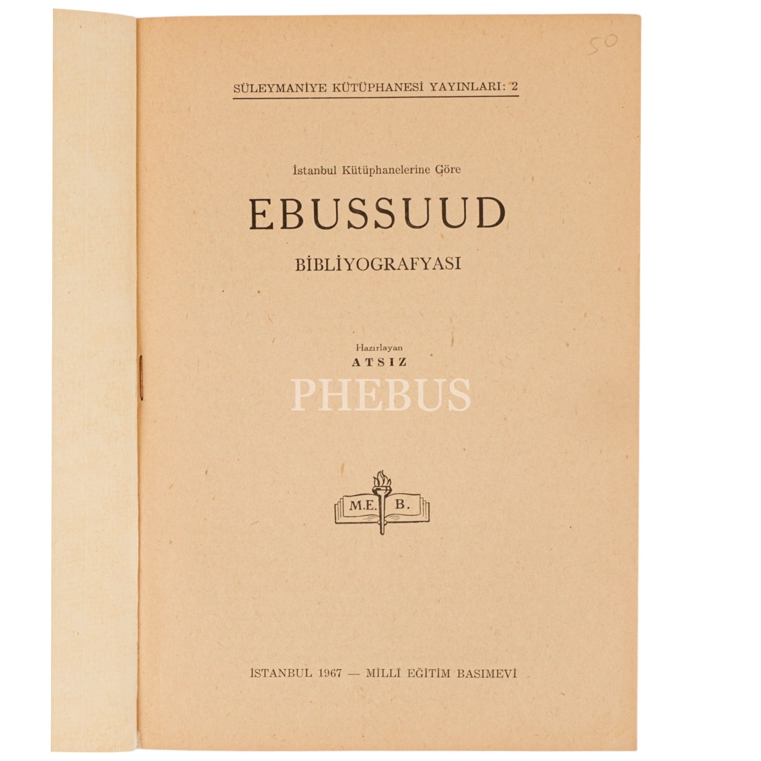 1. KÜTÜPHANELERİNE GÖRE EBUSSUUD BİBLİYOGRAFYASI, Hüseyin Nihal Atsız, 1967, Süleymaniye Kütüphanesi Yayınları, 17x24 cm...
