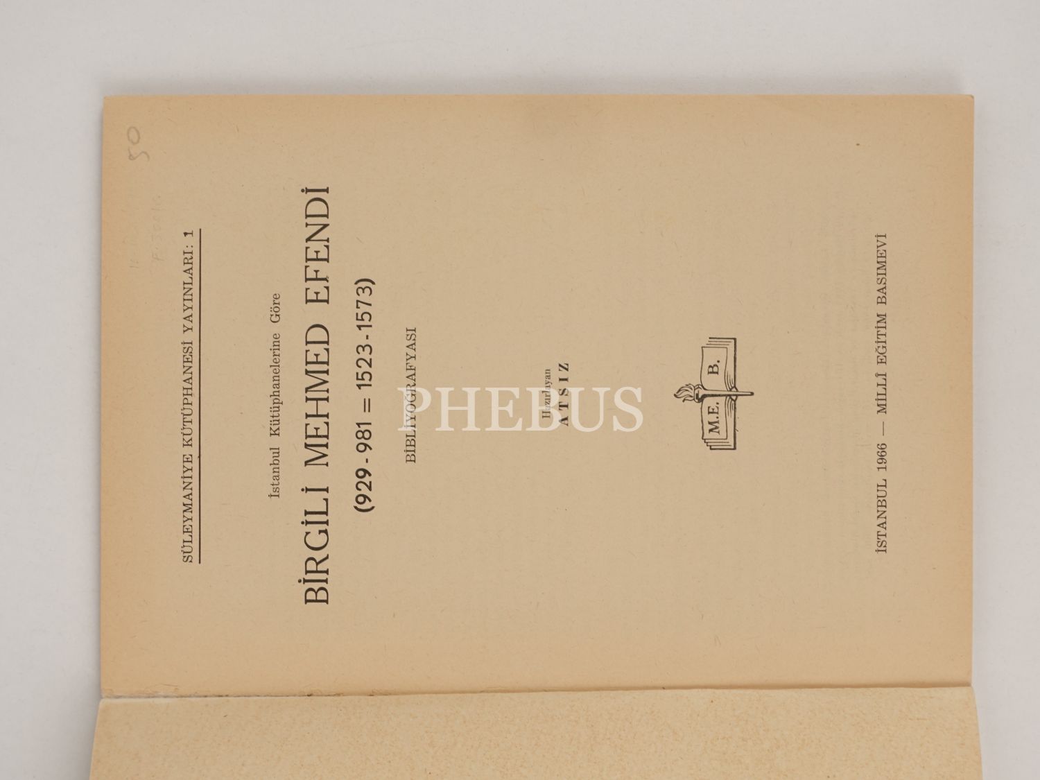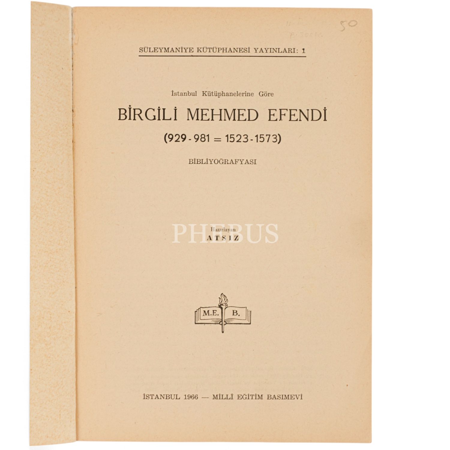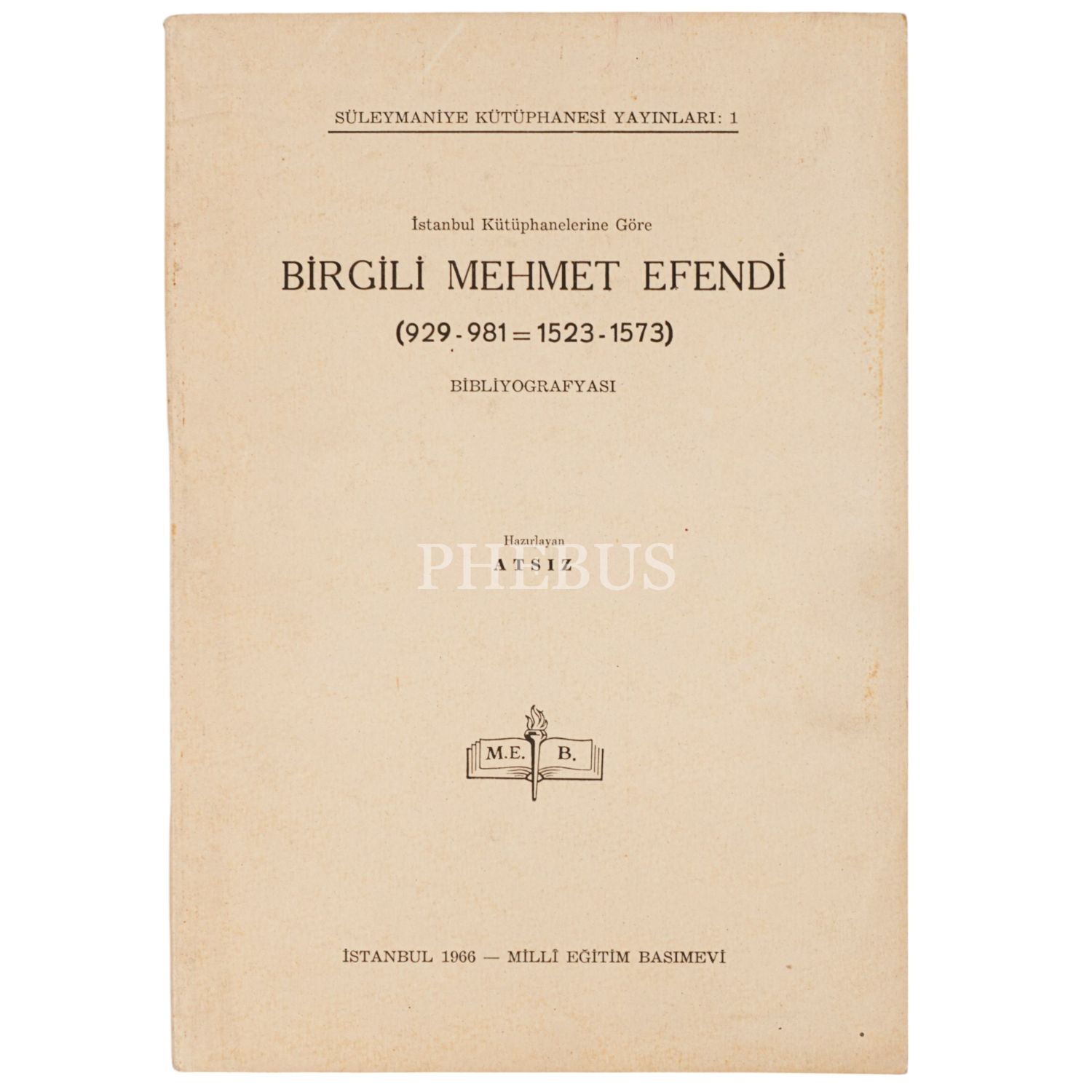 3. İSTANBUL KÜTÜPHANELERİNE GÖRE BİRGİLİ MEHMET EFENDİ BİBLİYOGRAFYASI, Hüseyin Nihal Atsız, 1966, Süleymaniye Kütüphanesi Yayınları, 17x24 cm...