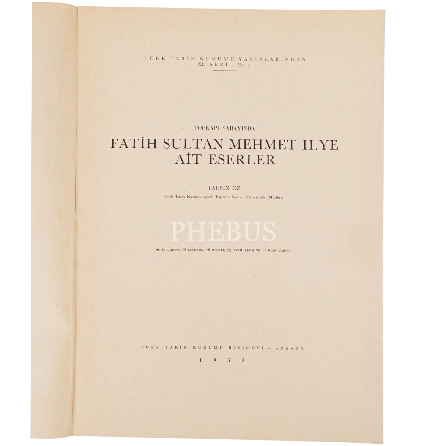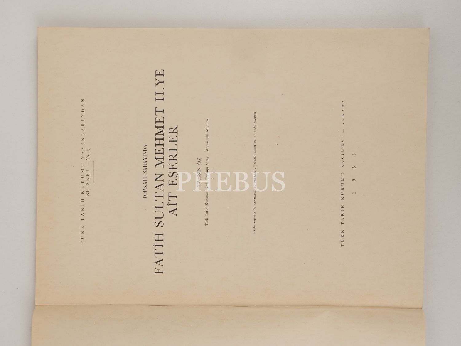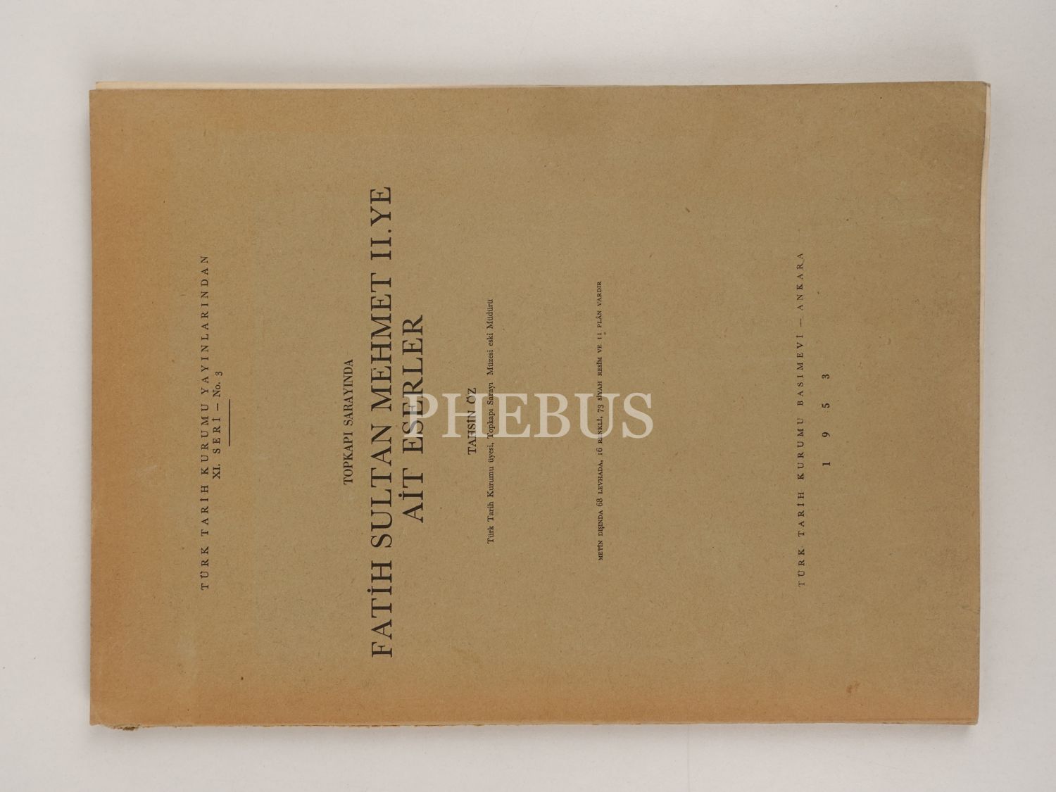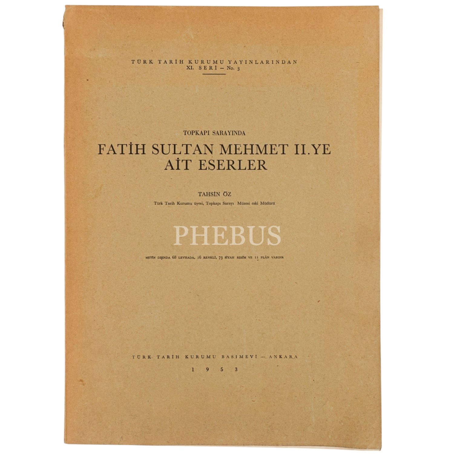 TOPKAPI SARAYINDA FATİH SULTAN MEHMET II. YE AİT ESERLER, Tahsin Öz, 1953, Türk Tarih Kurumu Yayınları, 33 sayfa, 24x34 cm...