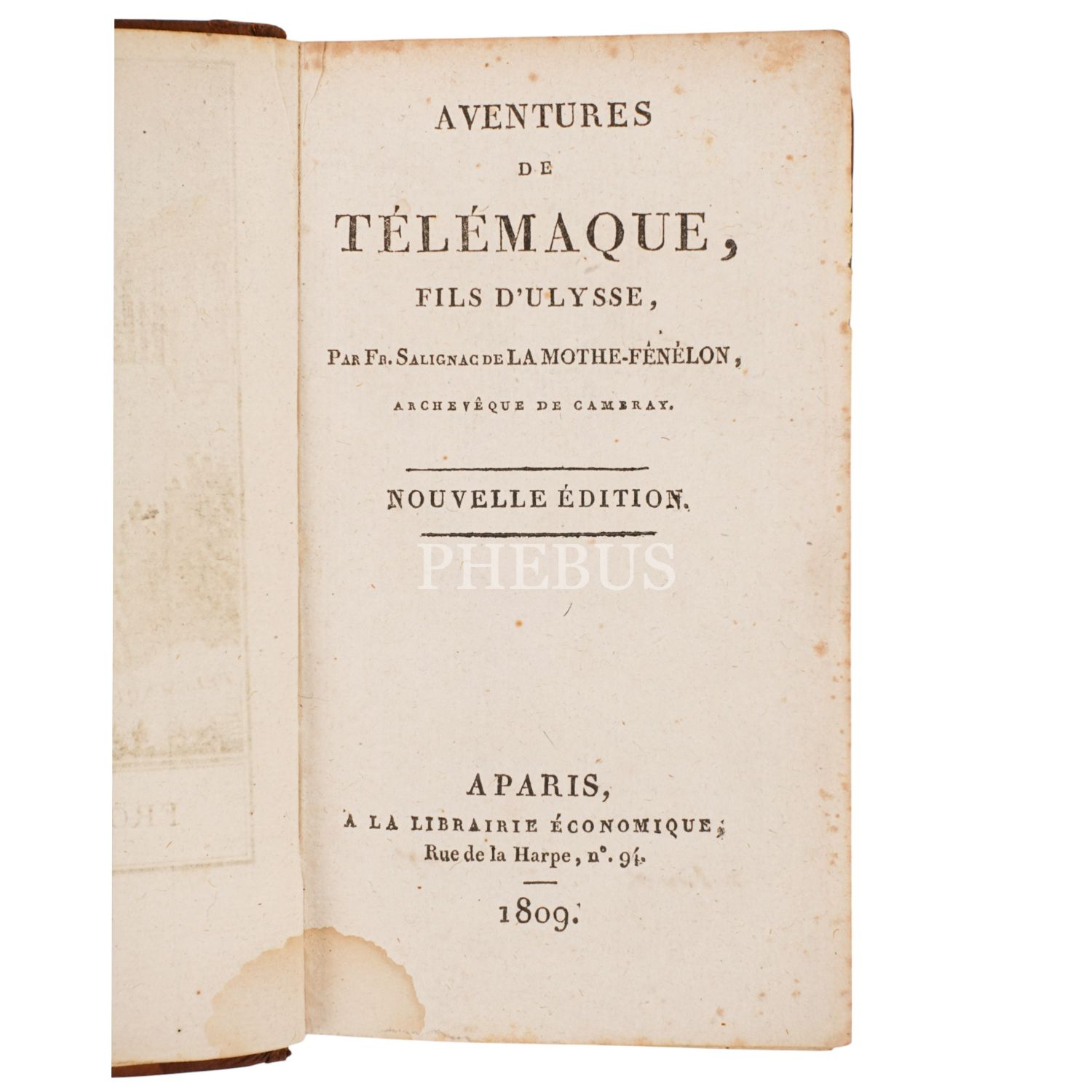 TELEMAQUE, Fenelon, 1809, A la Librairie Economoque (Paris), 498 sayfa, 10x17 cm...