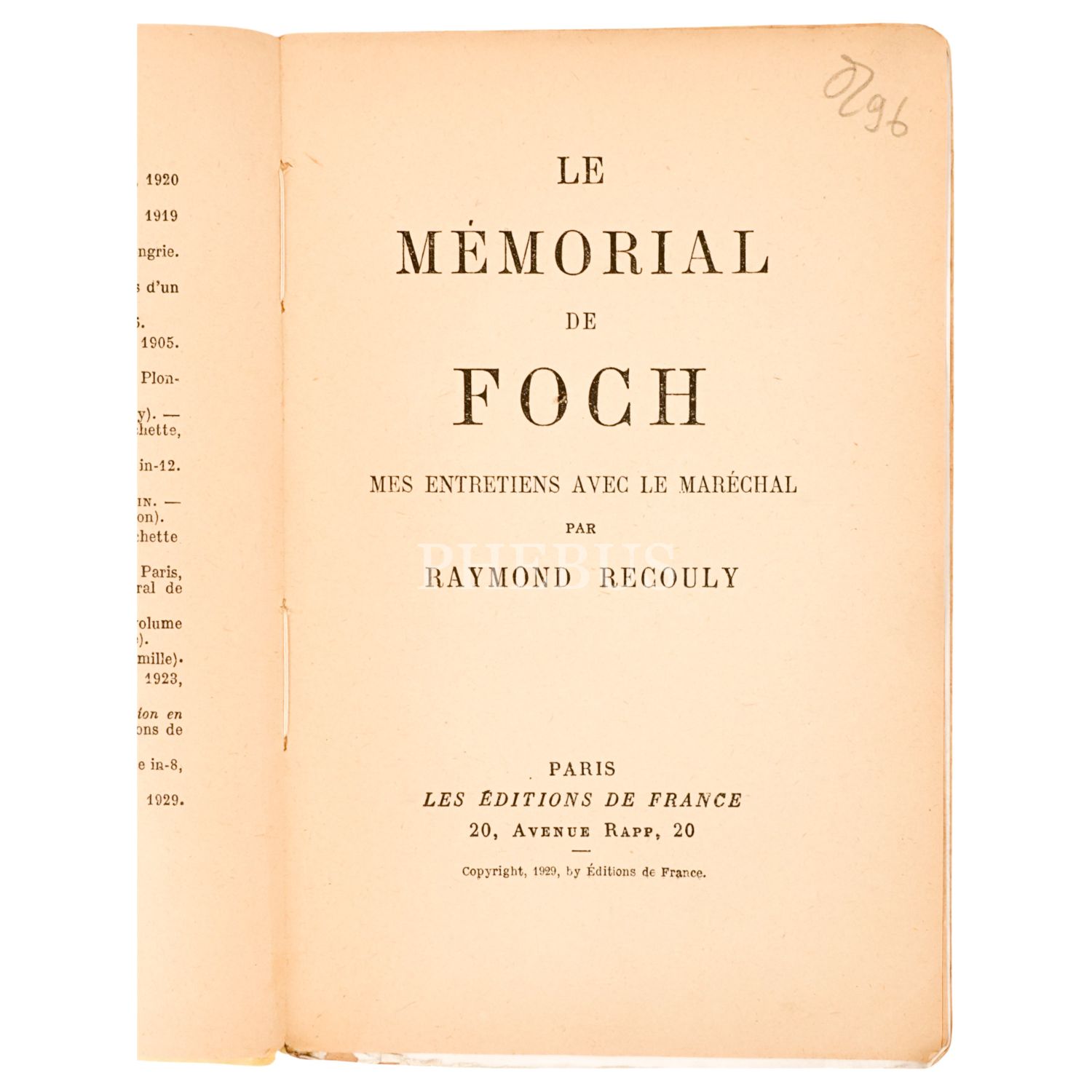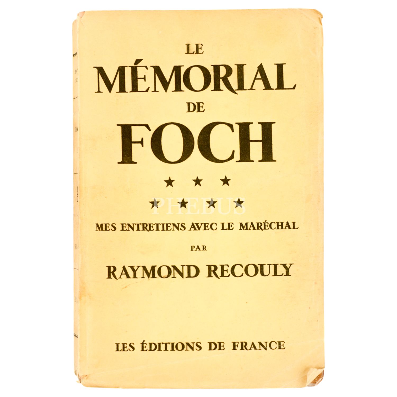 LE MEMORIAL DE FOCH, Raymond Recouly, 1929, Les Editions de France, 339 sayfa, 14x20 cm...