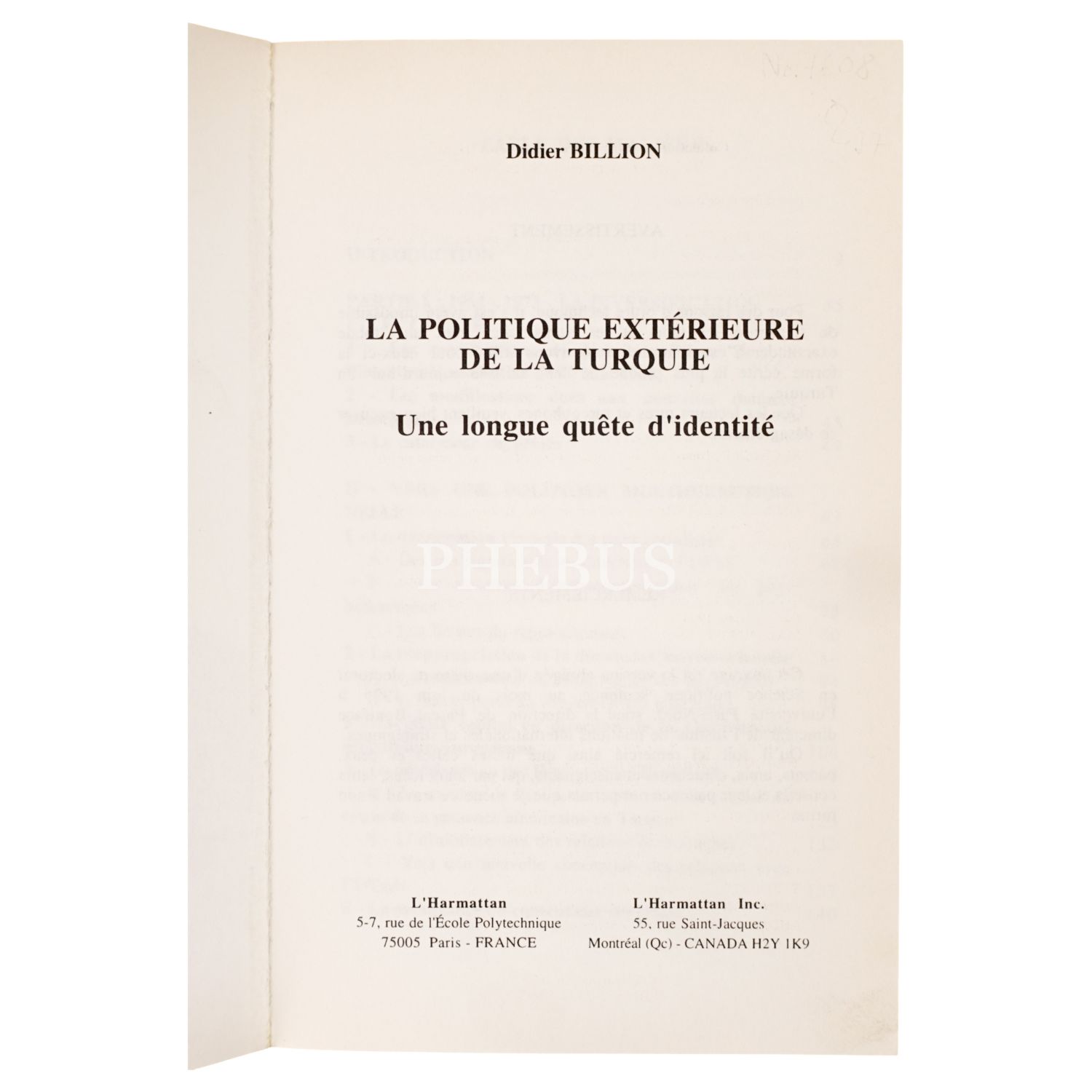 LA POLITIQUE EXTERIEURE DE LA TURQUIE, Didler Billion, 1997, L´Harmattan, 447 sayfa, 14x21 cm...