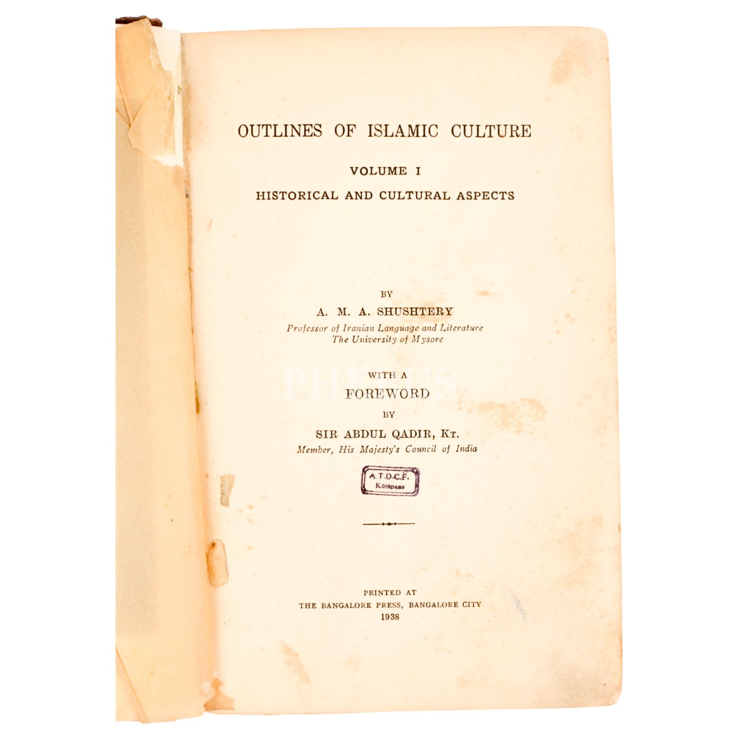 OUTLINES OF ISLAMIC CULTURE (Volume I), A. M. A. Shushtery, 1938, The Banglore Press, 340 sayfa, 15x23 cm...