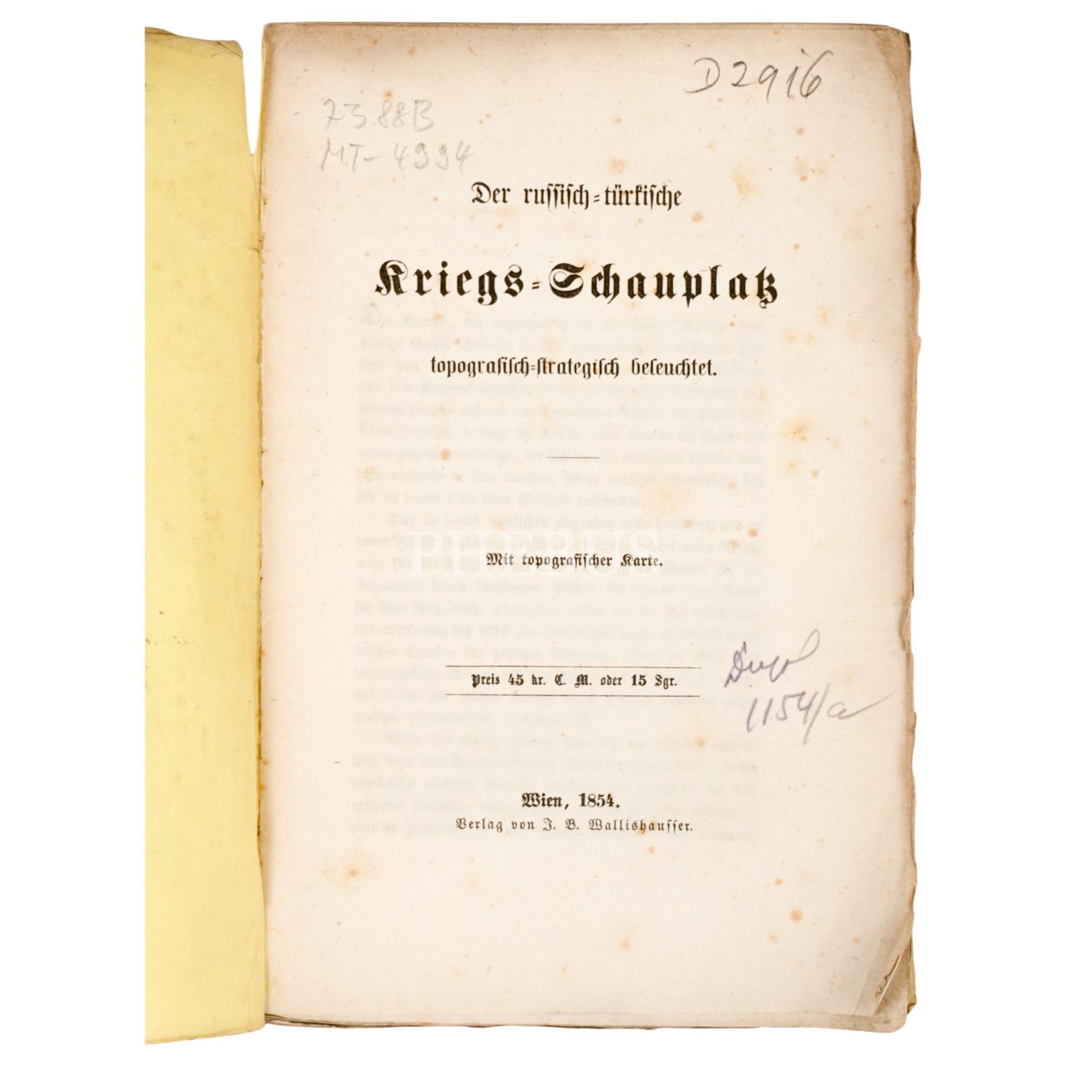 DER RUSSISCH-TÜRKISCHE KRIEGS-SCHAUPLATZ TOPOGRAFISCH-STRATEGISCH BELEUCHTET, 1854, Verlag von Wallishausser (Viyana), 82 sayfa,15x24 cm...