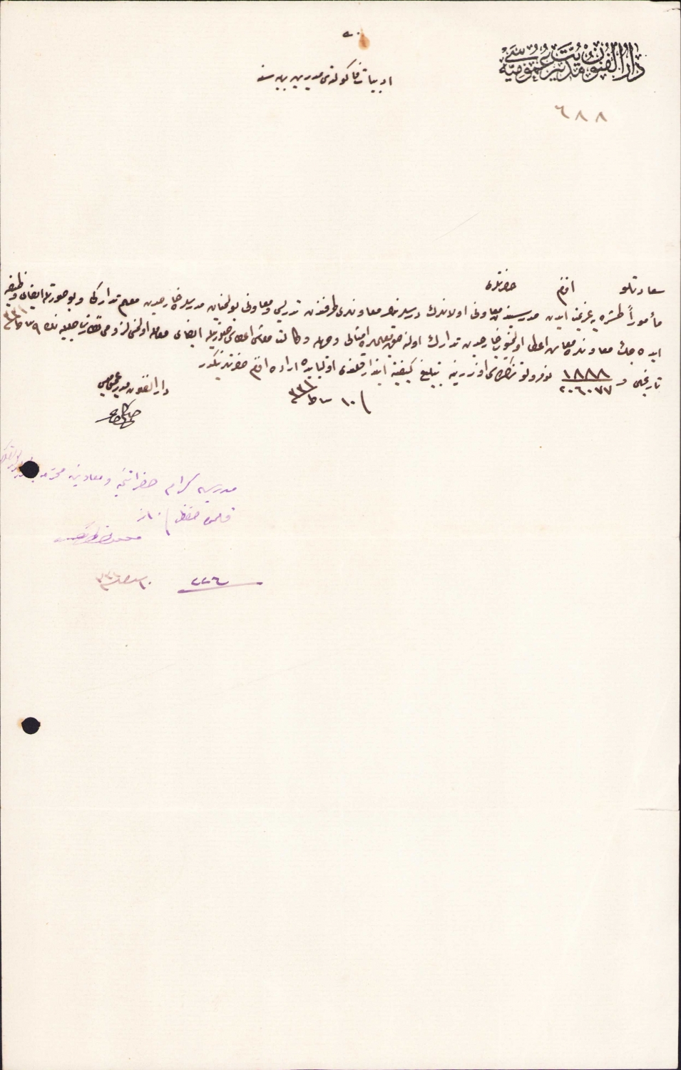 Osmanlı Maarif nezareti umumiyesi antetli Darülfünun müdüriyeti umumiyesine yazılmış belge, kuvve-i basıra (hakem) tayini hakkında, 1331, 22x33 cm