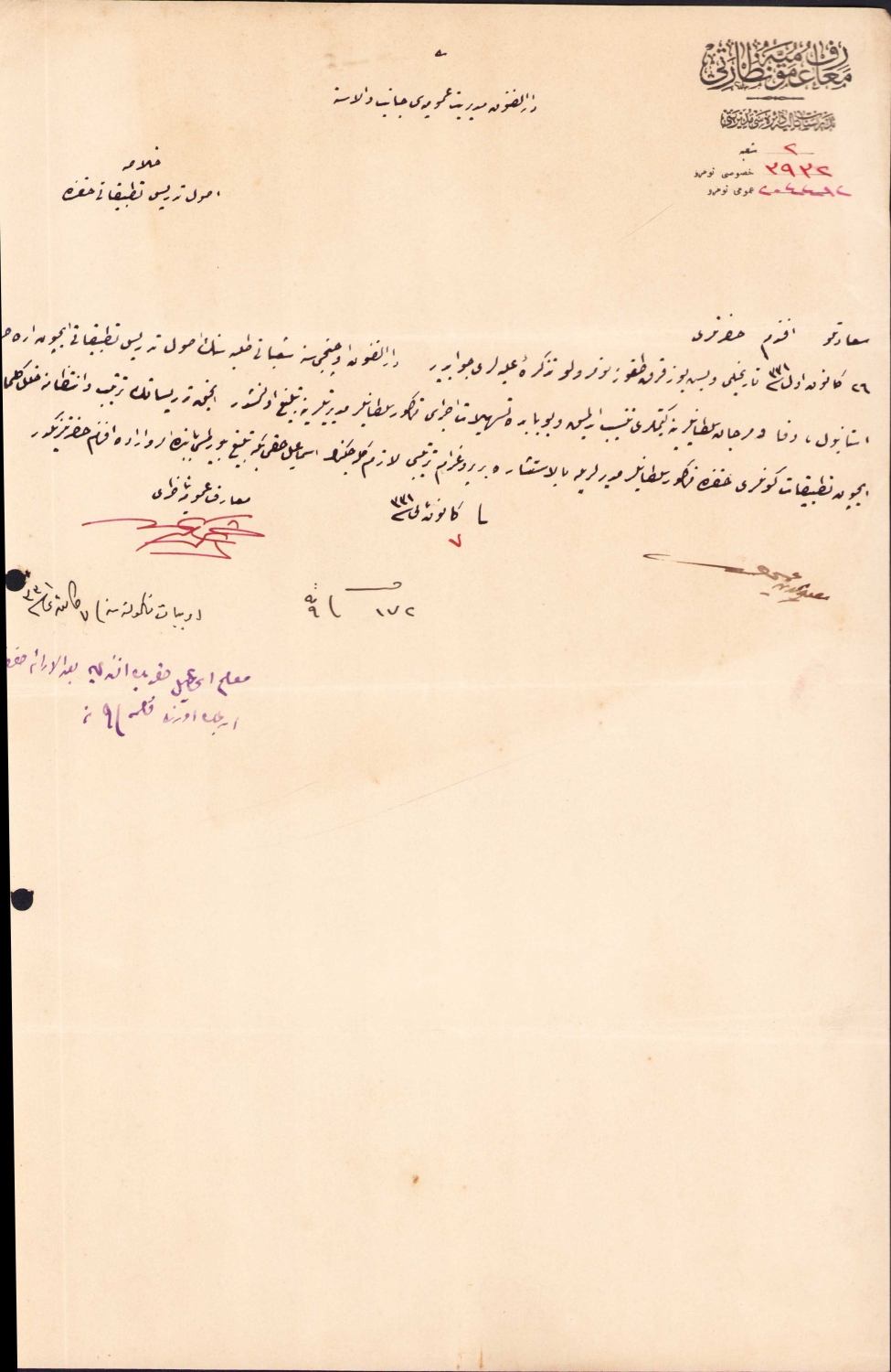 Osmanlı Maarif nezareti umumiyesi antetli Darülfünun müdüriyeti umumiyesine yazılmış belge, Usul-i tedris tatbikatı hakkında, muallim İsmail Hakkı Beyefendi ile alakalı, 1331, 22x32 cm