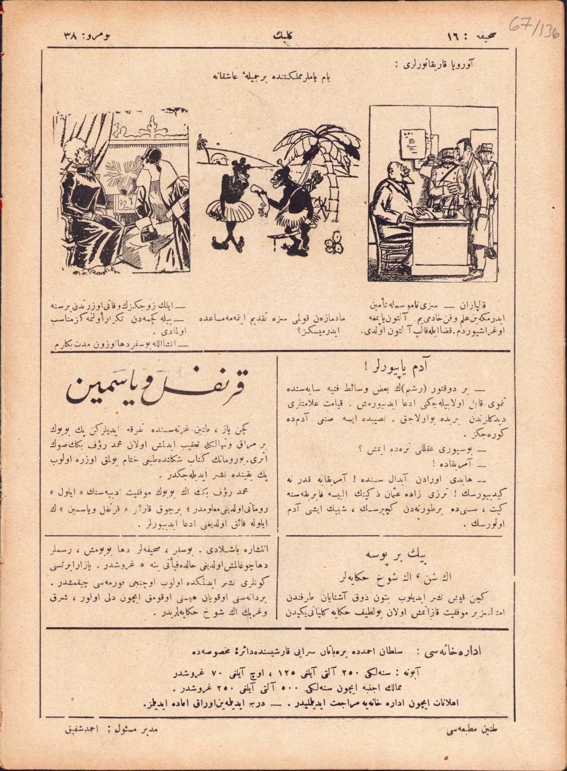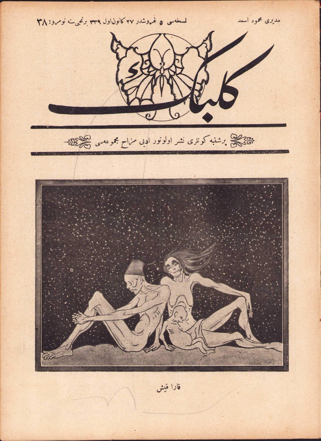 Osmanlıca Kelebek mecmuası, müdürü Mahmut Esat, kapak "Kara kış",16 sayfa, 20x26 cm