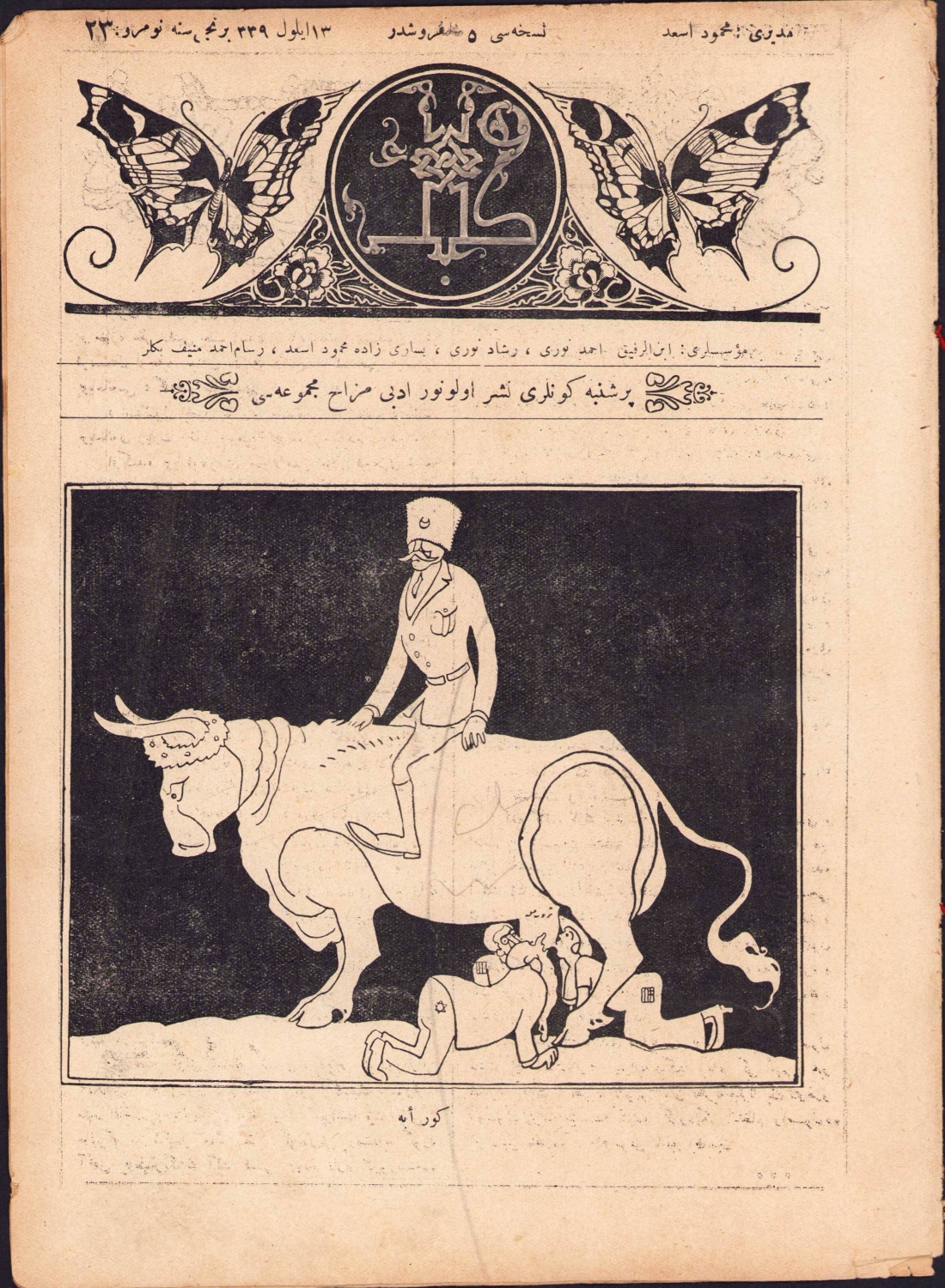 Osmanlıca Kelebek mecmuası, müdürü Mahmut Esat, kapak "Körebe", 16 sayfa, 20x26 cm