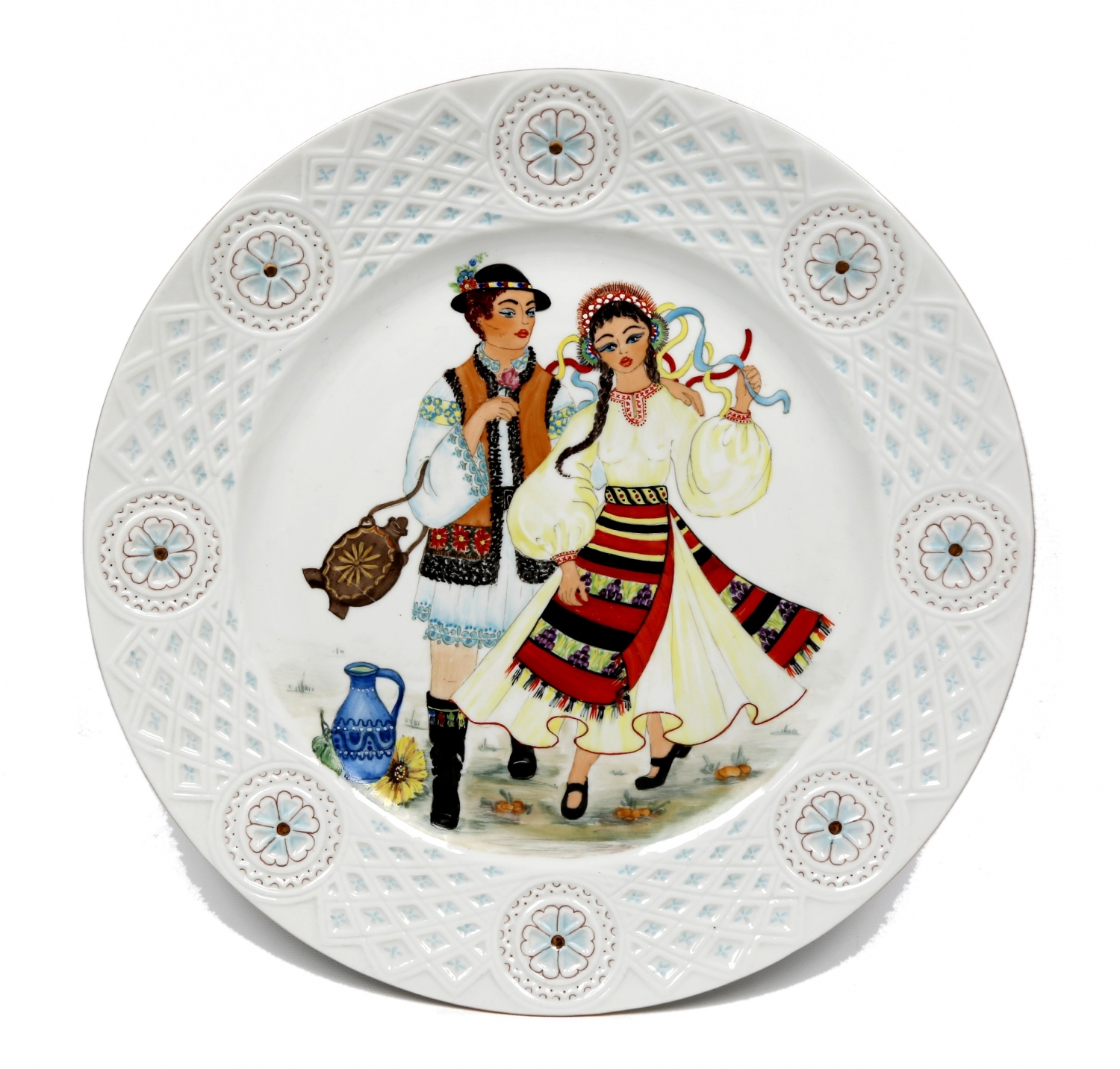 Eski dönem porselen üzeri el boyama tabak,30 cm