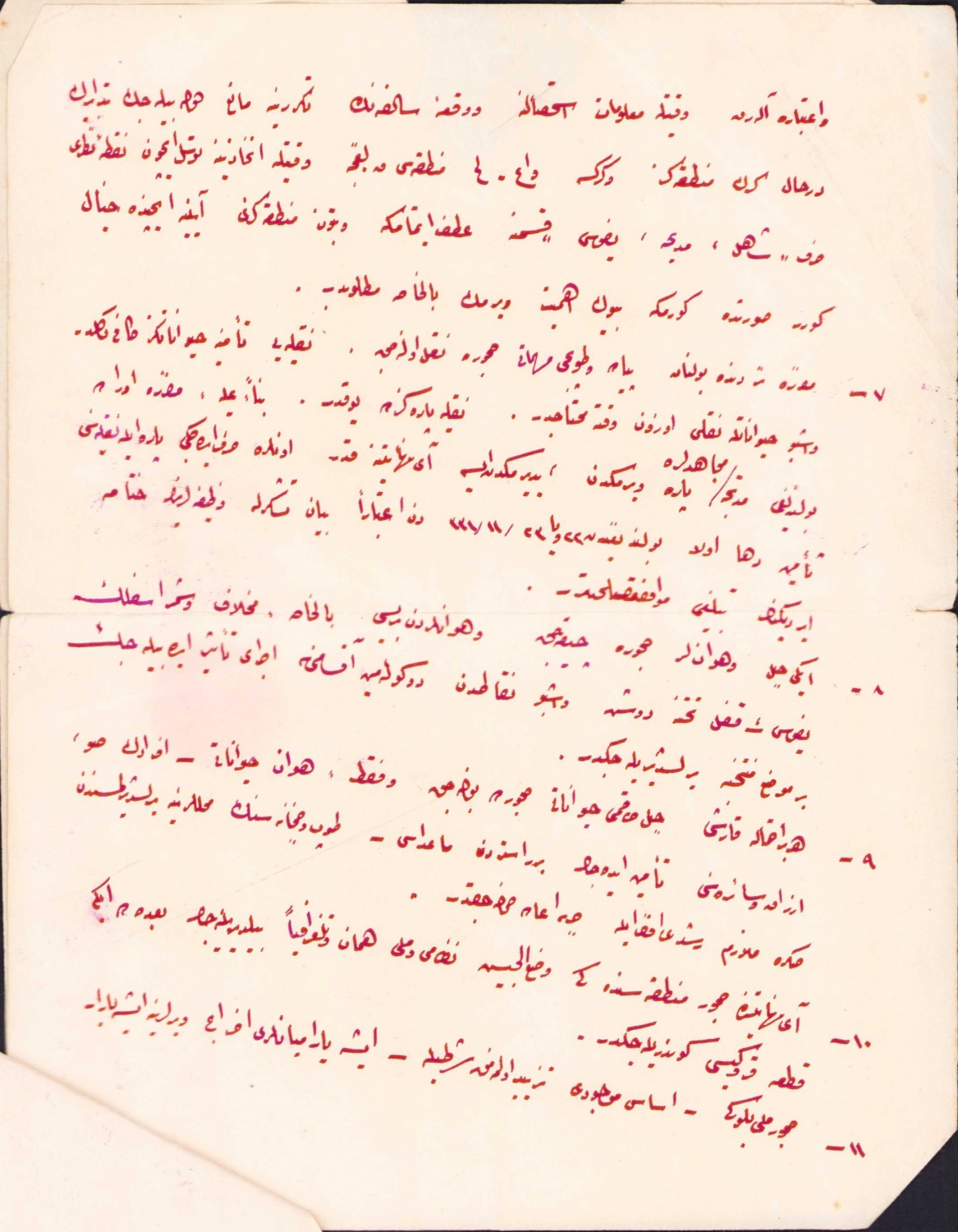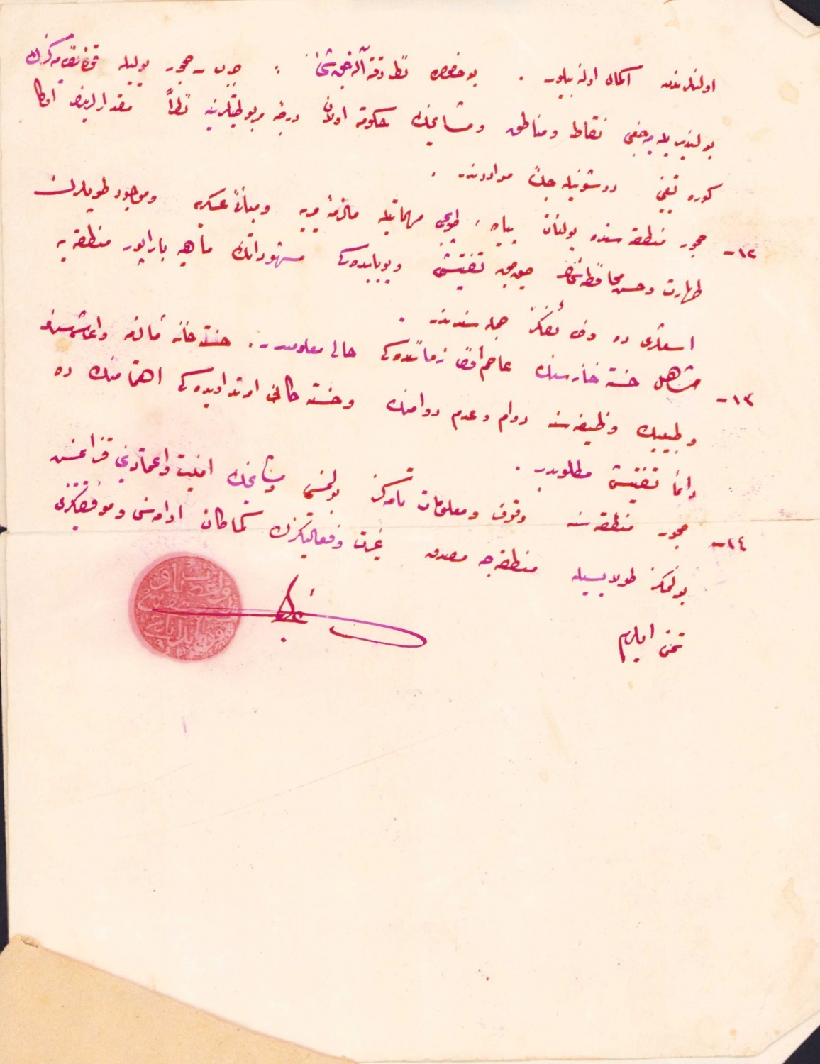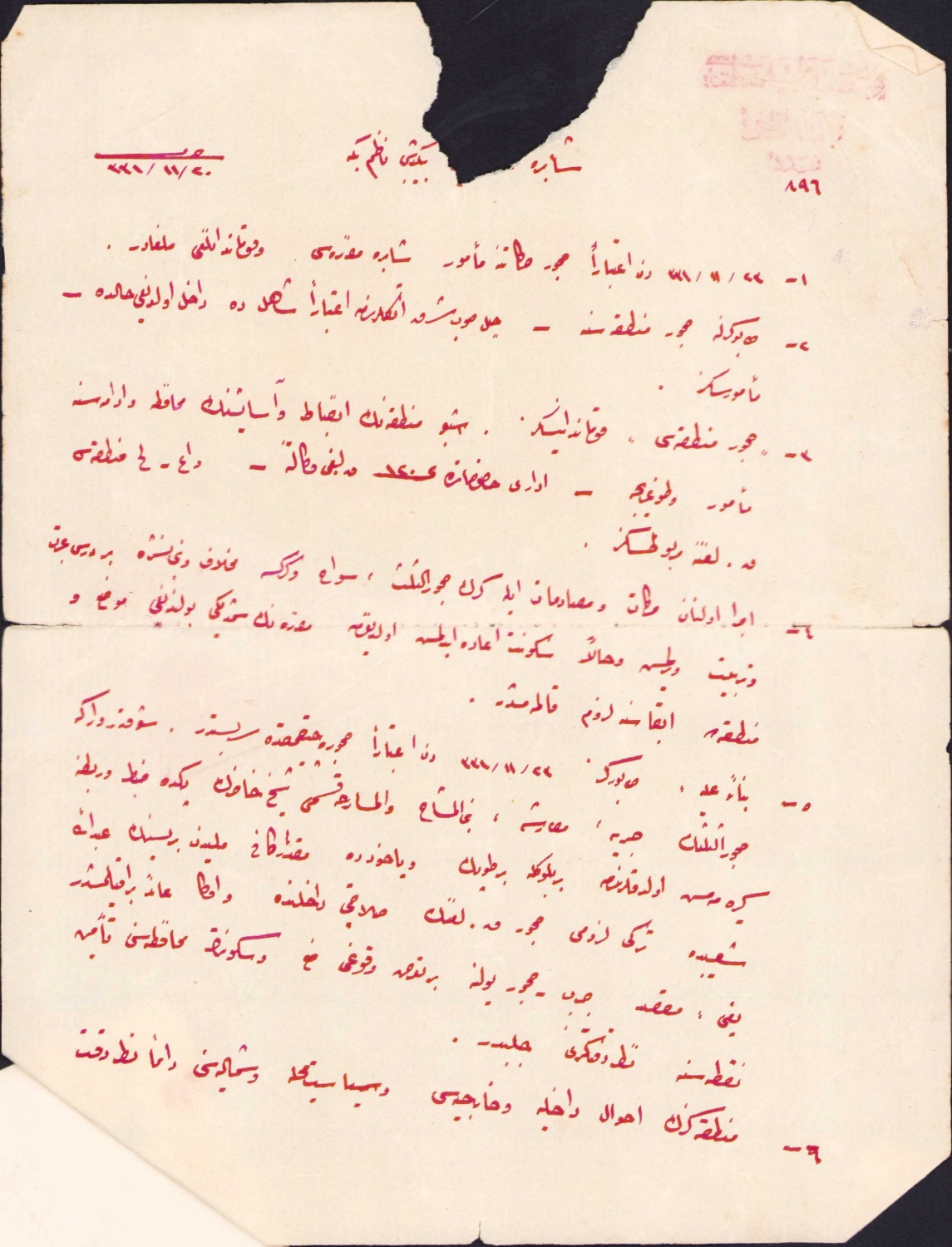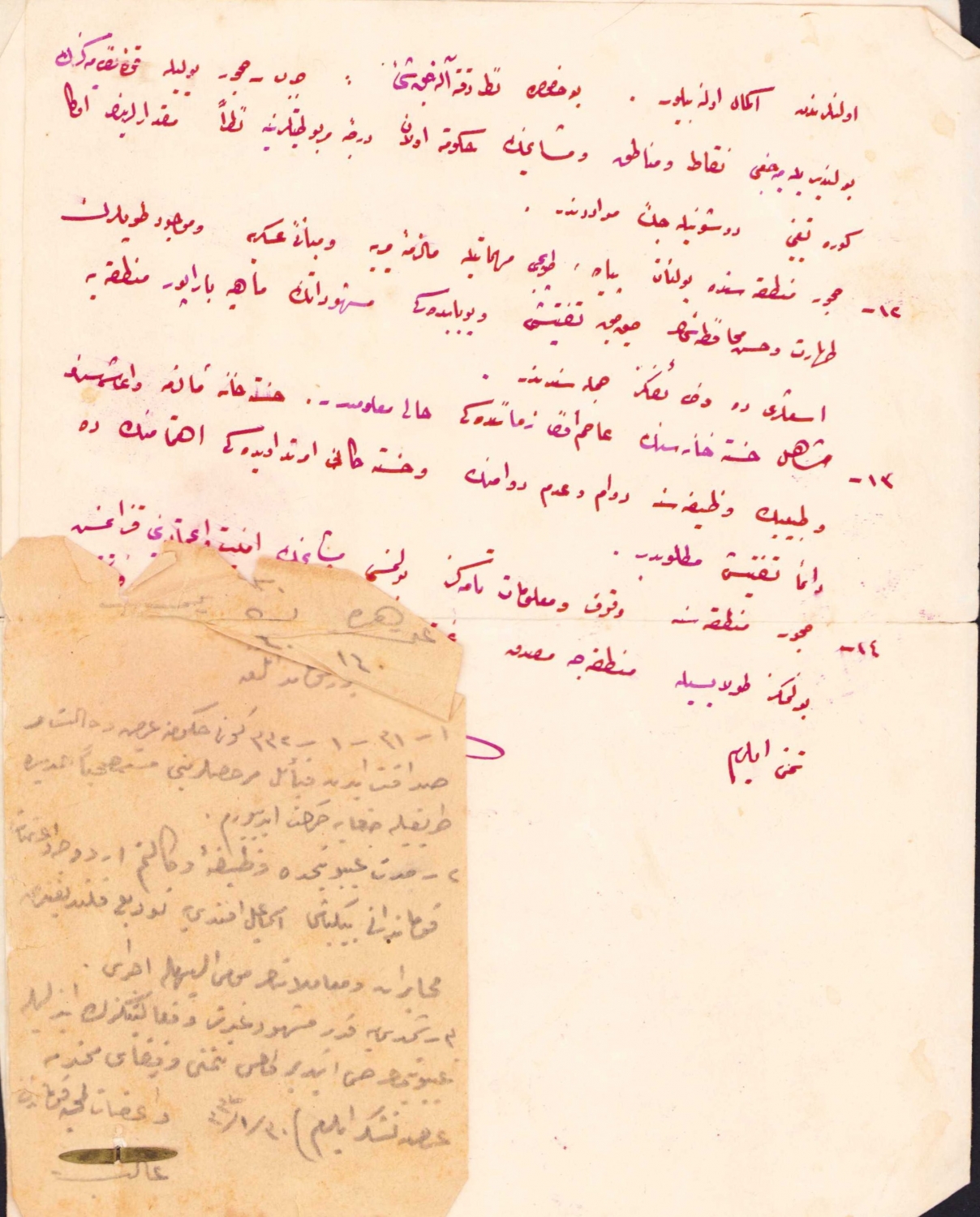Osmanlıca tabur talimatnamesi hava toplarının temizlenmesi ve mühimmat hakkında, bir kenarı kopuk, 3 sayfa, 17x21 cm