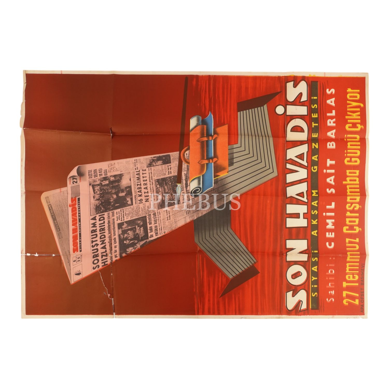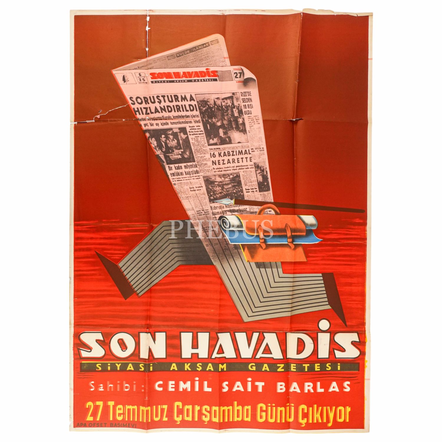 Cemil Sait Barlas tarafından çıkarılan SON HAVADİS gazetesinin afişi, Apa Ofset Basımevi..