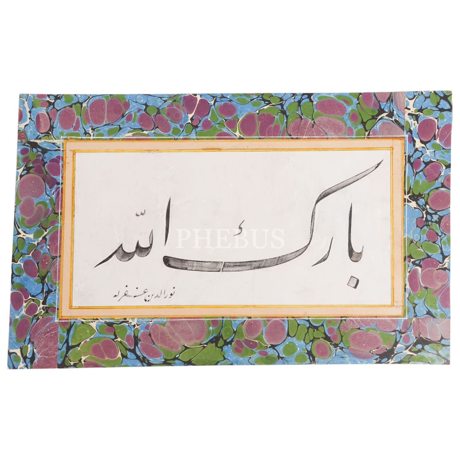 Nureddin ketebeli celî talik yazı, yazı ölçü: 28x14 cm, mukavva ölçü: 38x24 cm...
