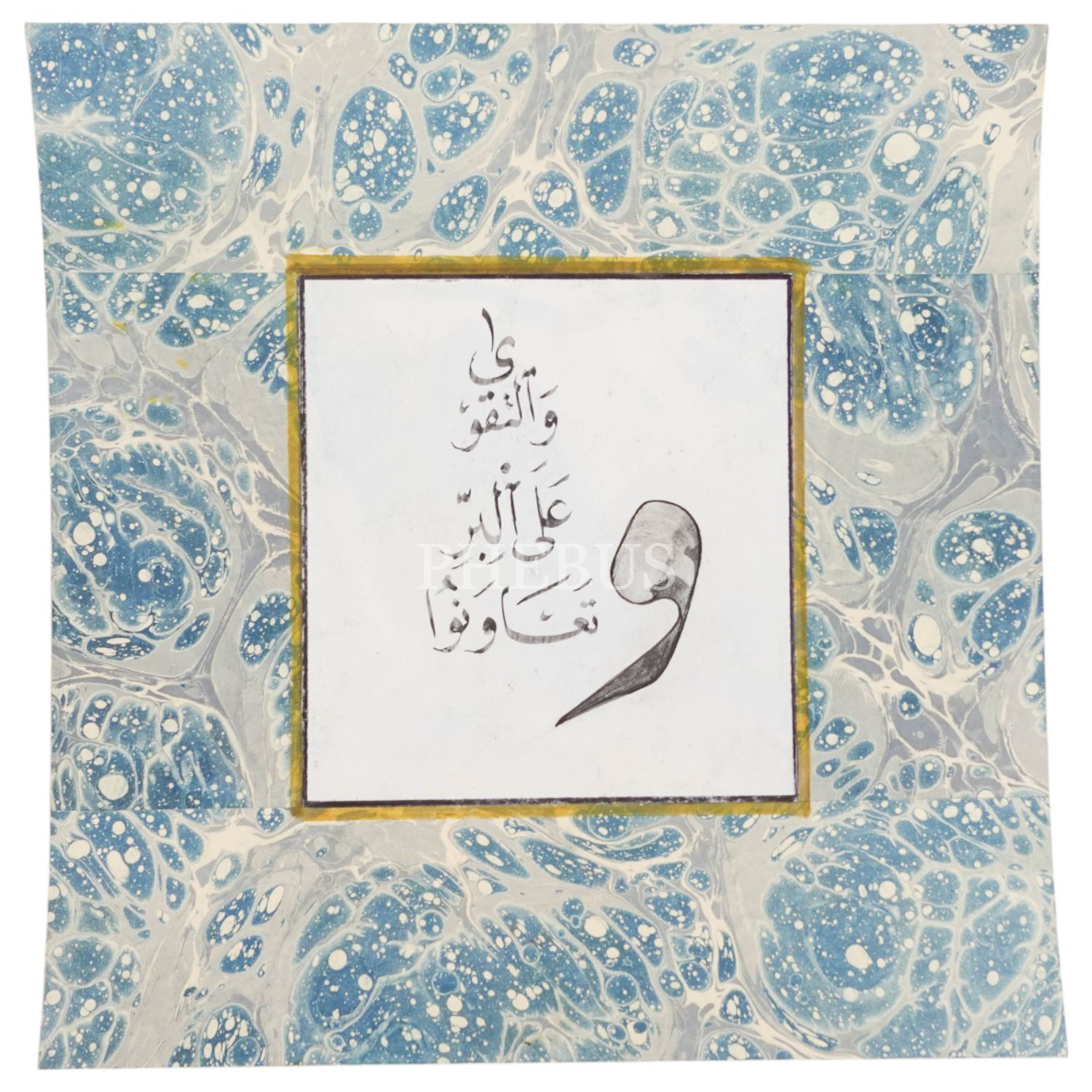 Nesih âyet-i kerime, pervazı ebrulu, yazı ölçü: 11x11 cm, mukavva ölçü: 22x23 cm...