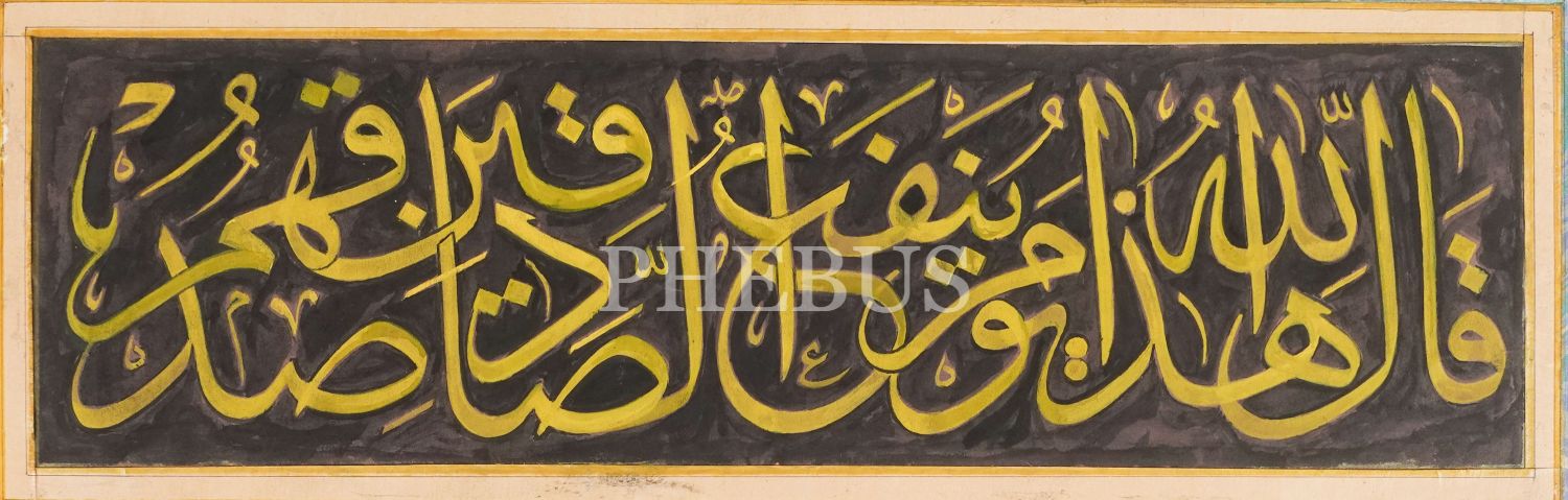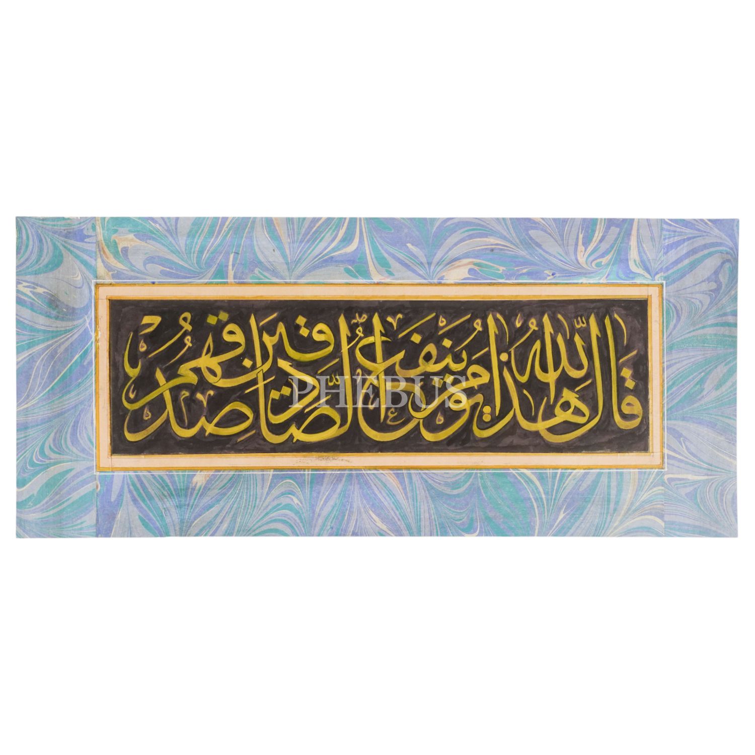 Celî sülüs âyet-i kerime, pervazı ebrulu, yazı ölçü: 38x11 cm, 50x22 cm...