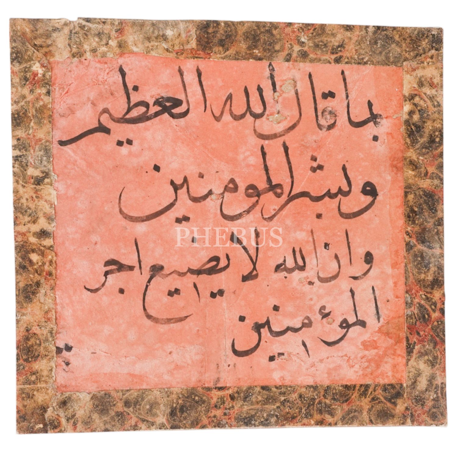 Okunuşu: "Bimâ kâle´llahu´l-azîm: Ve beşşiri´l-mü´minîne ve innellahe lâ yudîu ecra´l-mü´minîn." Anlamı: "Yüce Allah´ın buyurduğu: İnananları müjdeleyin, Allah inananların ecrini zayi etmez."
