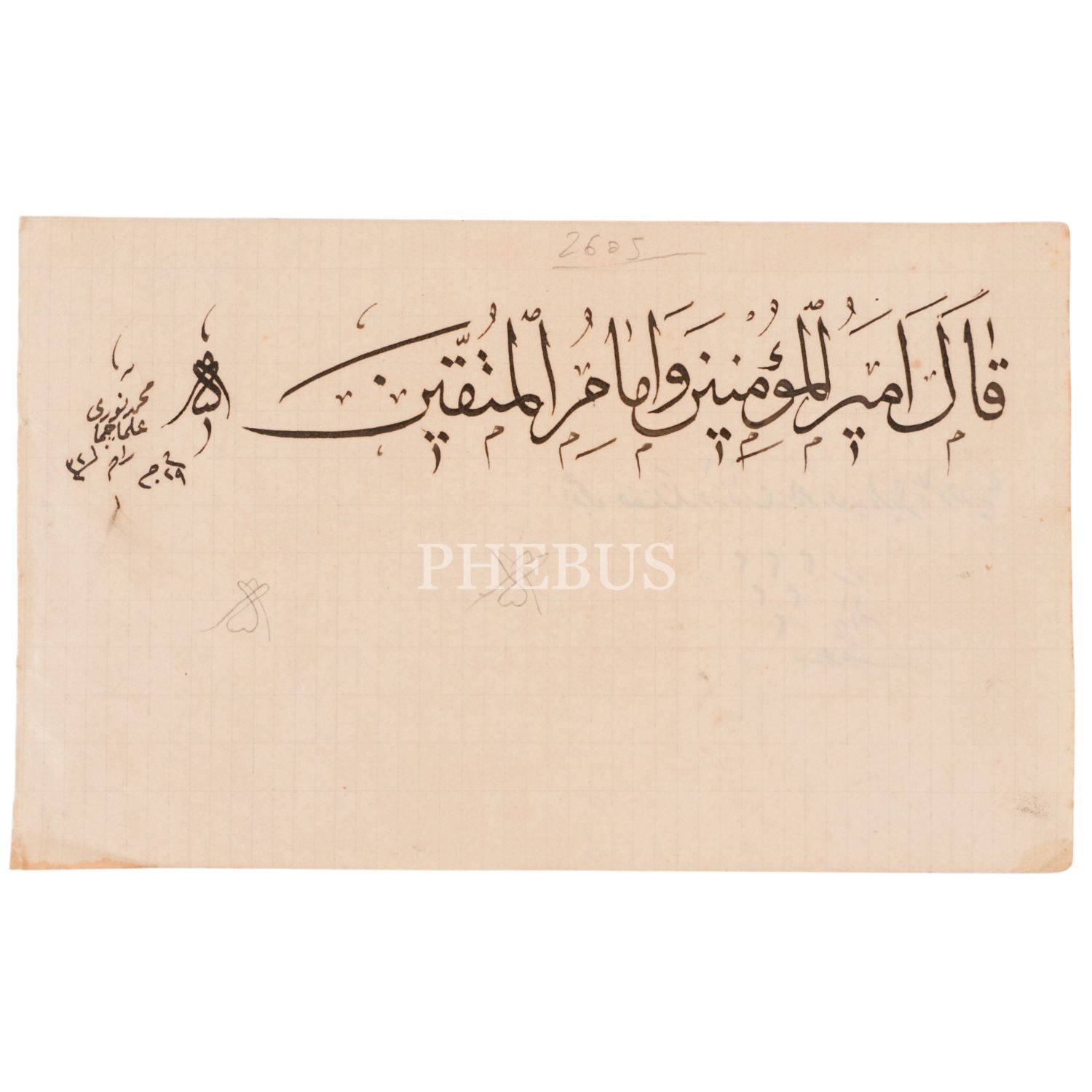 "Kâle emîrü´l-mü´minîn ve imâmü´l-müttakîn."