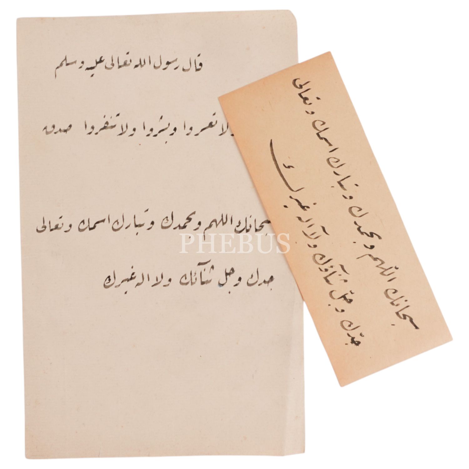 İki adet rika yazı, yazı ölçü: 14x22 cm ve 15x6 cm...