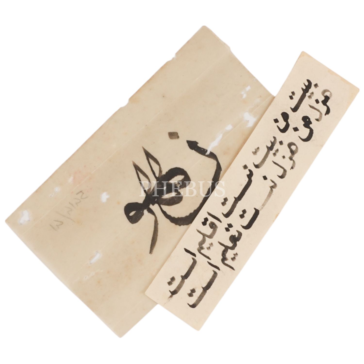Sülüs karalama ve Farsça beyit, kağıt ölçü: 13x7&13x3 cm...