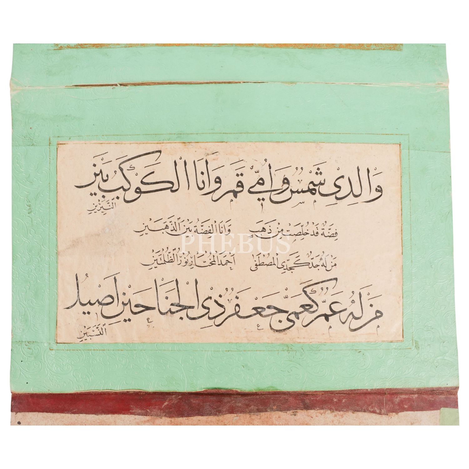 Üç adet sülüs murakka kıtası, kağıt ölçü: 22x13 cm...