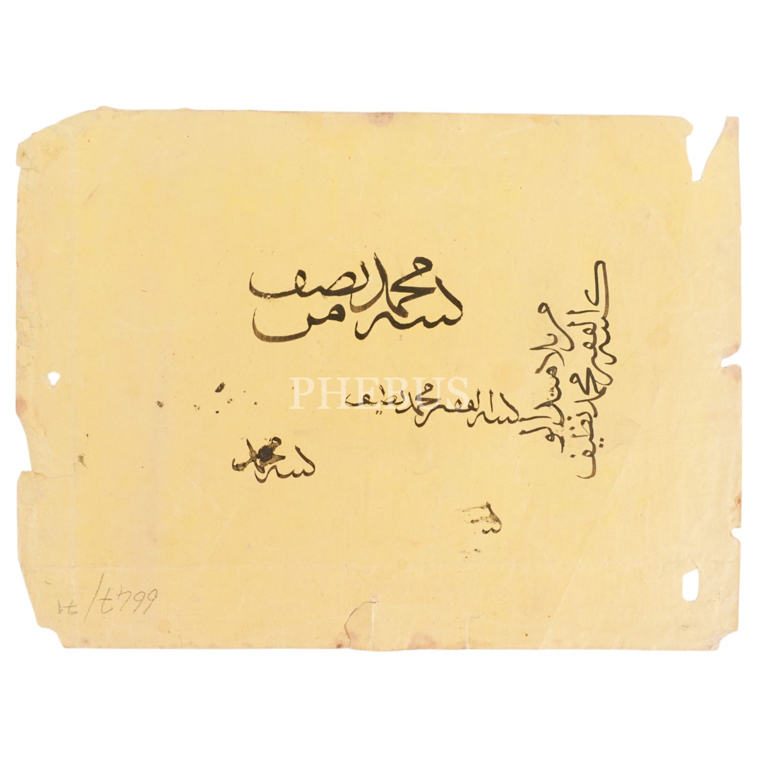 Arka yüzü Mehmed Nazif ketebeli sülüs-nesih kıta, kağıt ölçü: 22x16 cm...
