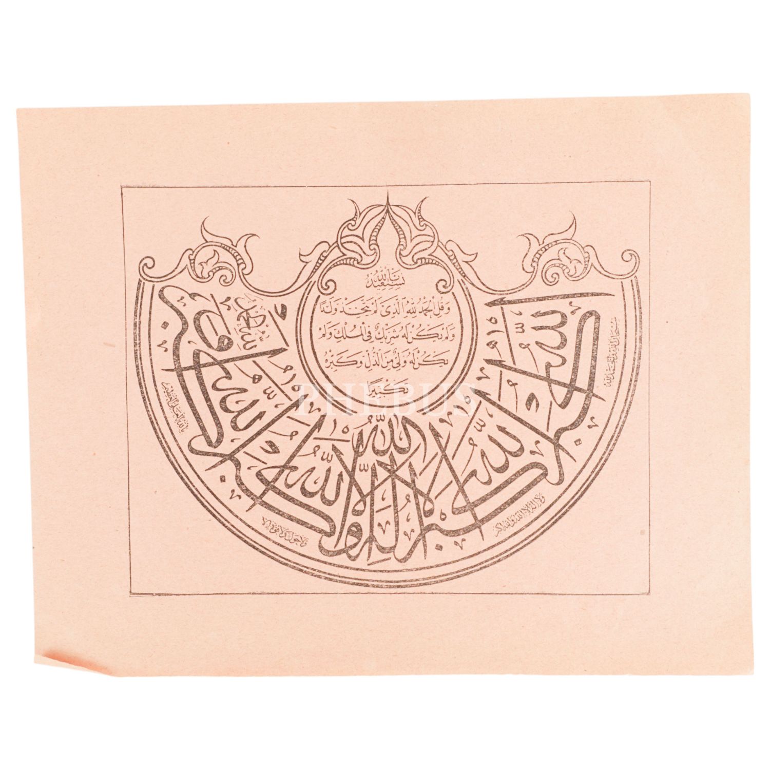 Teşrik tekbiri, lâ havle ve âyet-i kerime içeren istif yazı, yazı ölçü: 13x10 cm, kağıt ölçü: 18x14 cm...