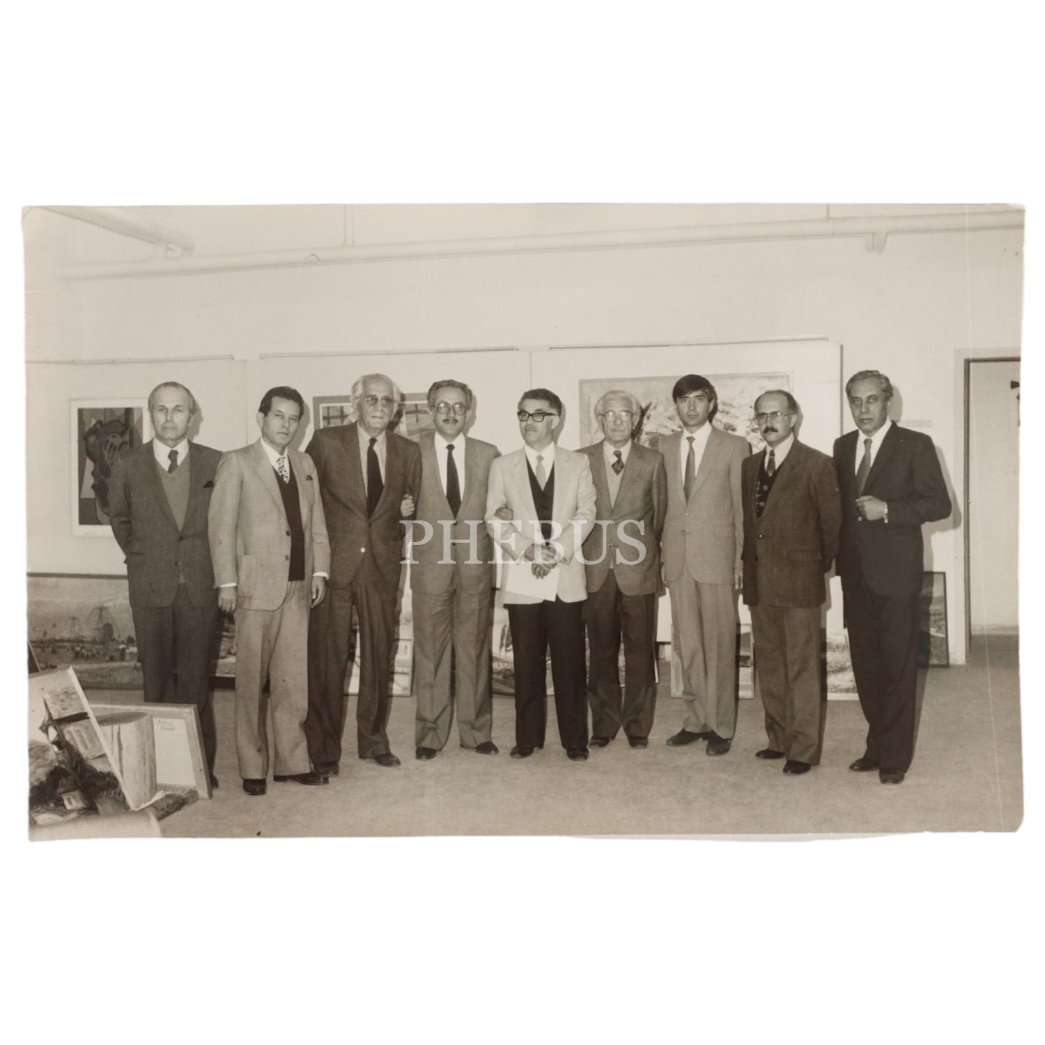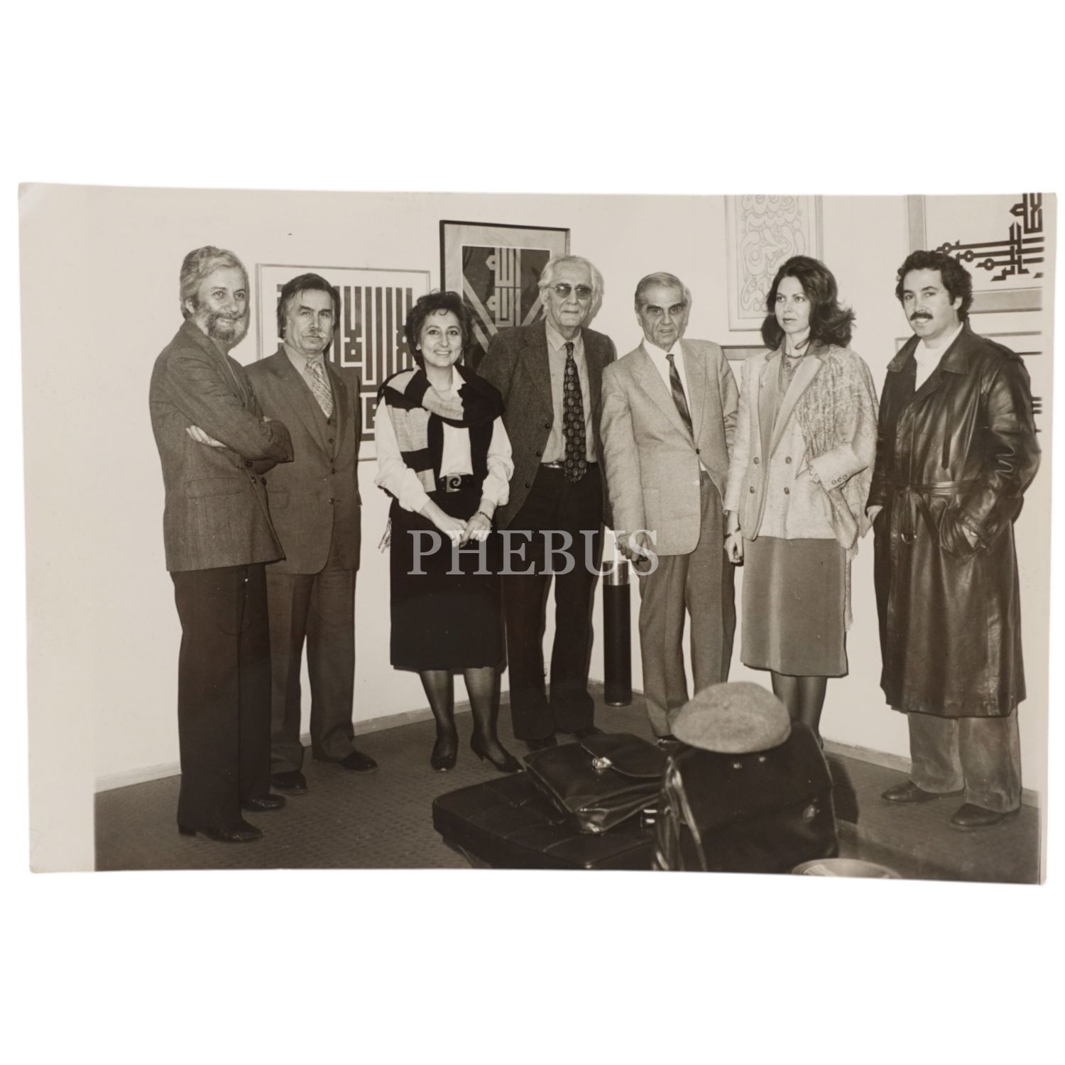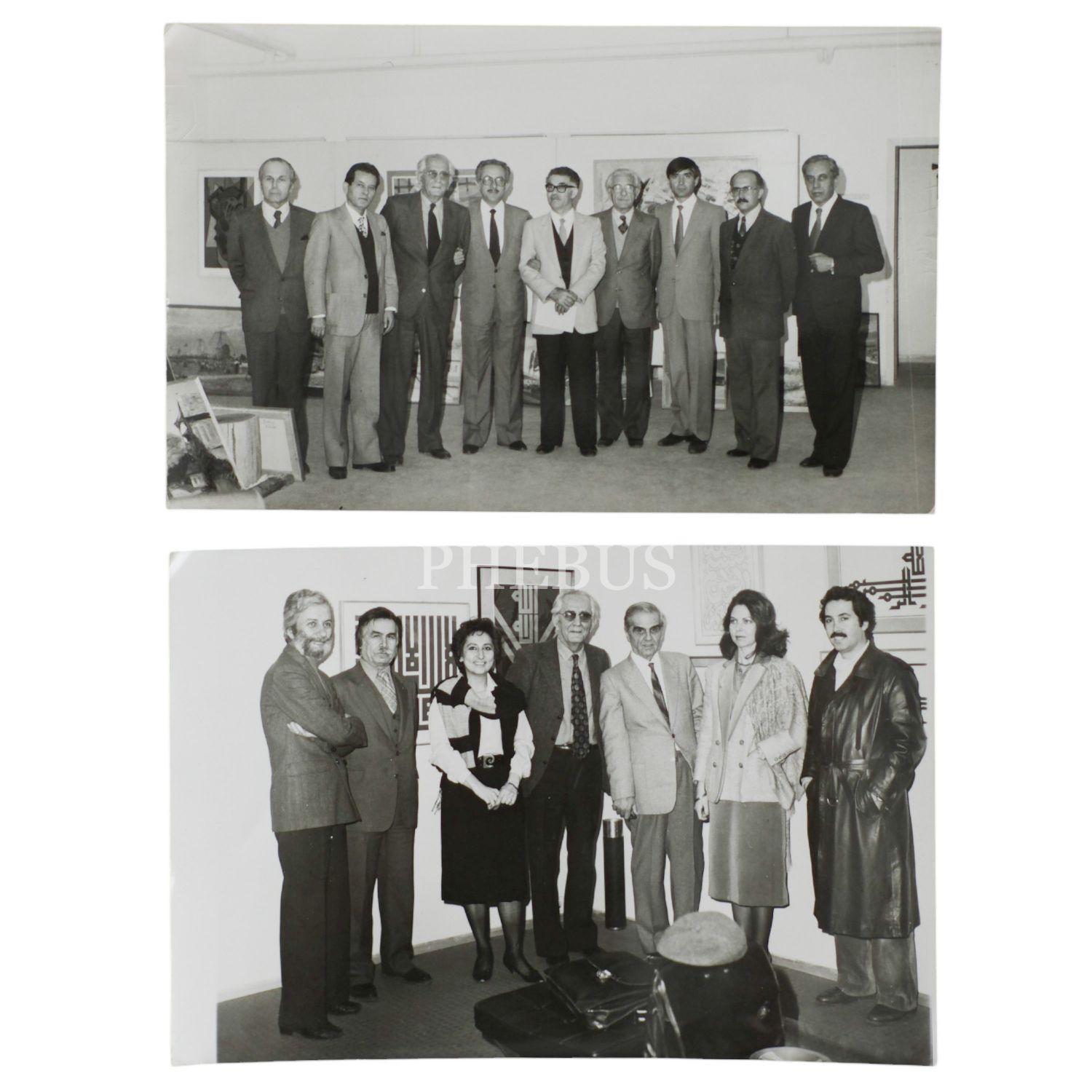 Hattat Emin Barın, sergisini ziyaret eden misafirlerle, 2 adet fotoğraf, 24 Aralık 1983 tarihli, ölçü: 18x12 cm...