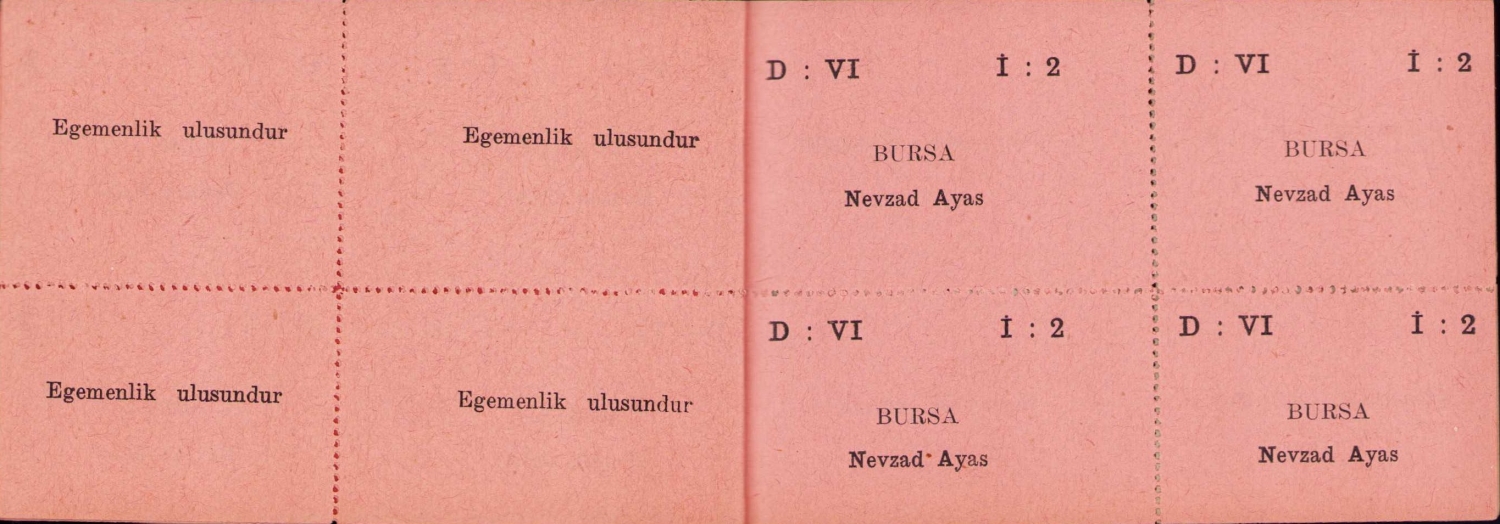 T.B.M.M. oy pusulası, Bursa Nevzad Ayas, 16 kırmızı - 20 yeşil pusula mevcut, 12x7 cm