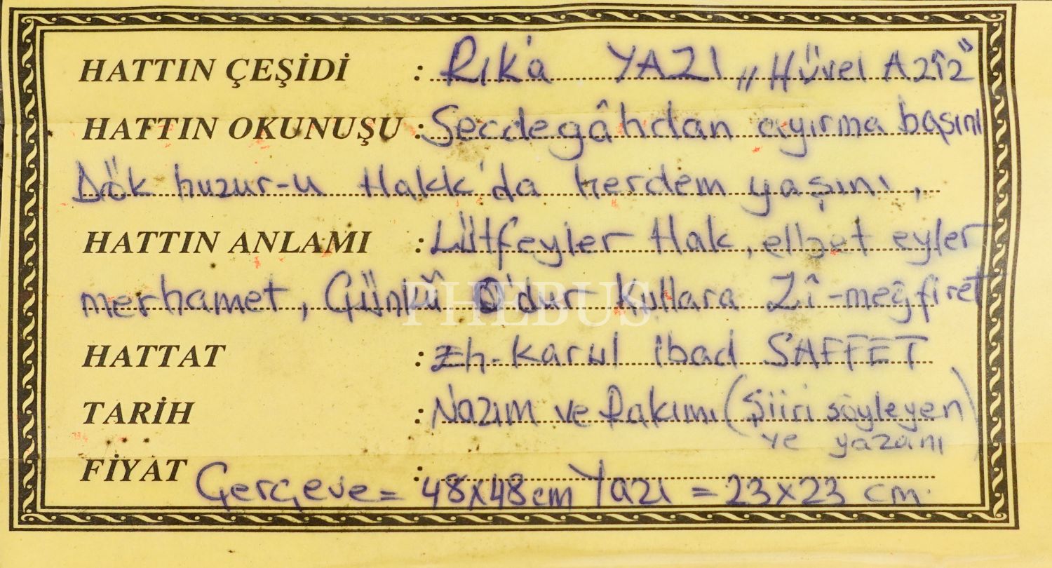 "Hüve´l-aziz Secdegâhdan ayırma başını