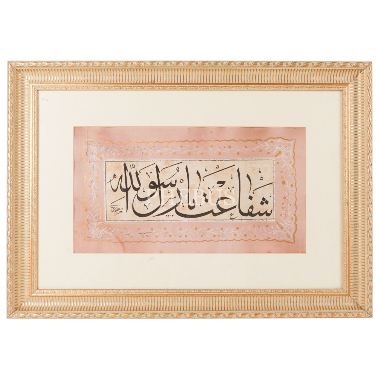 Osman ketebeli sülüs levha, 1303 levha, yazı ölçü: 34x12 cm, çerçeve içi: 63x41 cm...
