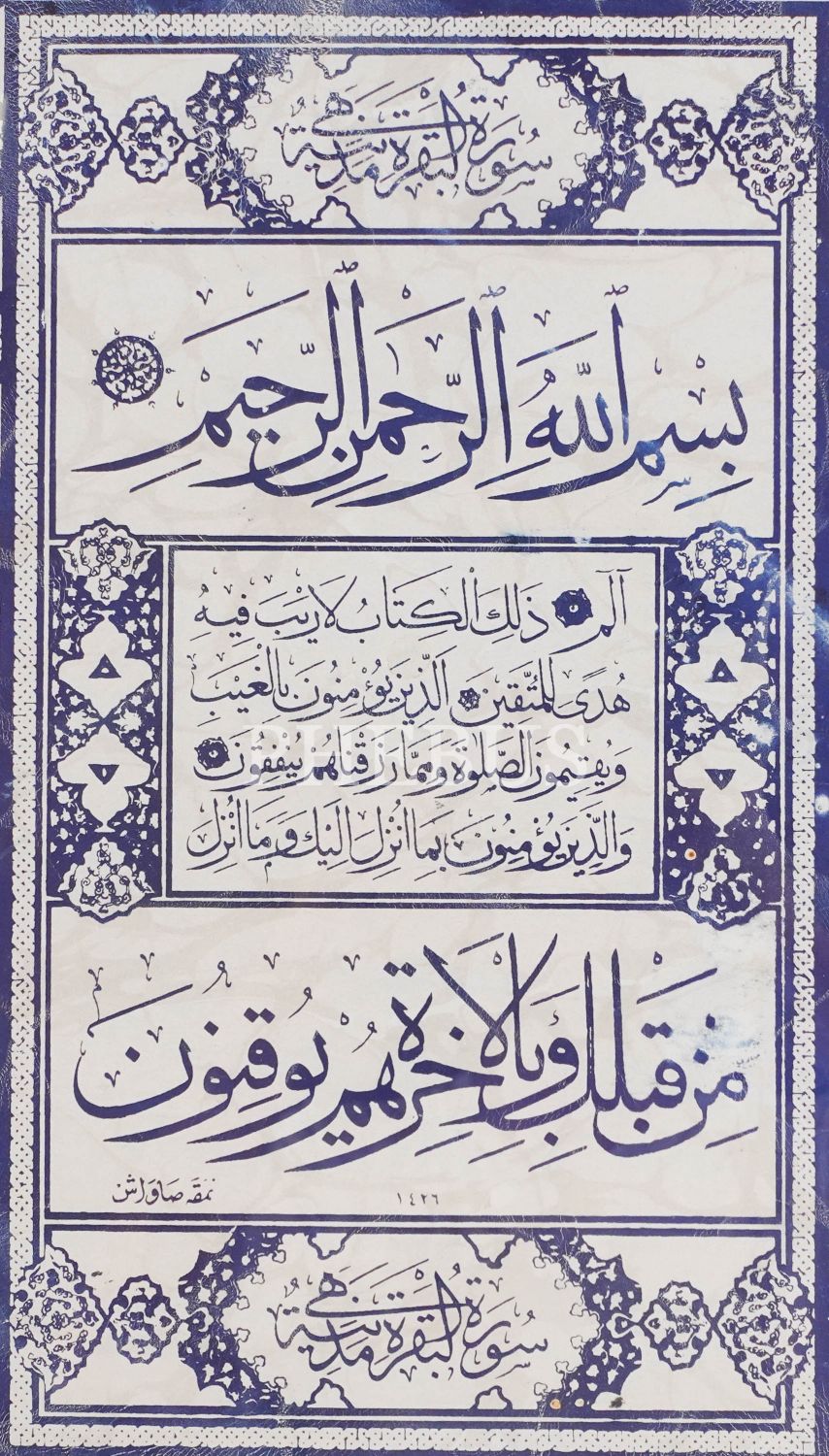 Savaş ketebeli nesih-muhakkak akkâse levha, 1426 tarihli, yazı ölçü: 20x37 cm, çerçeve içi ölçü: 47x65 cm...