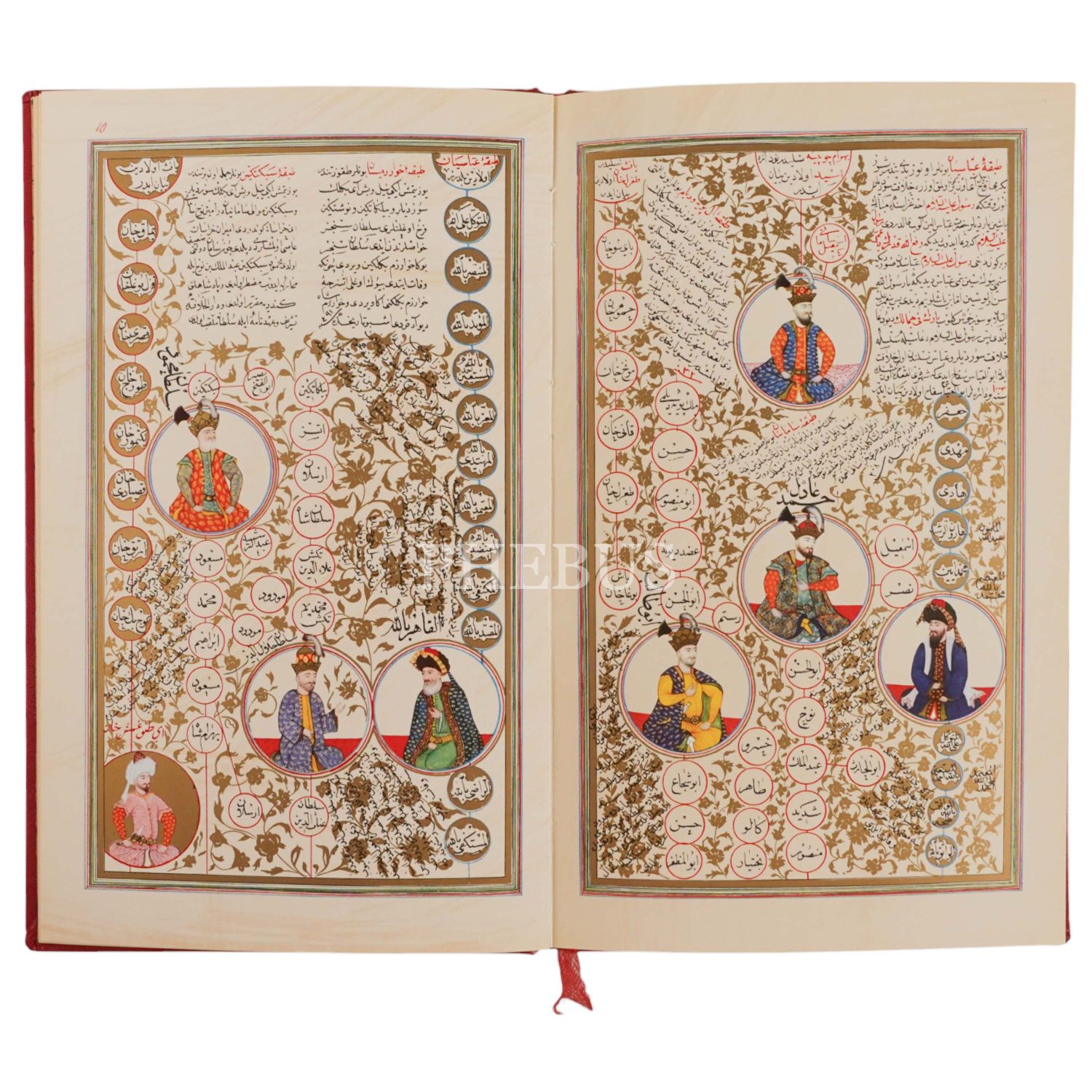Osmanlı padişahları, Peygamberler ve ünlü Türk hanedanlarının soy ağaçlarının yer aldığı minyatürlü eser.