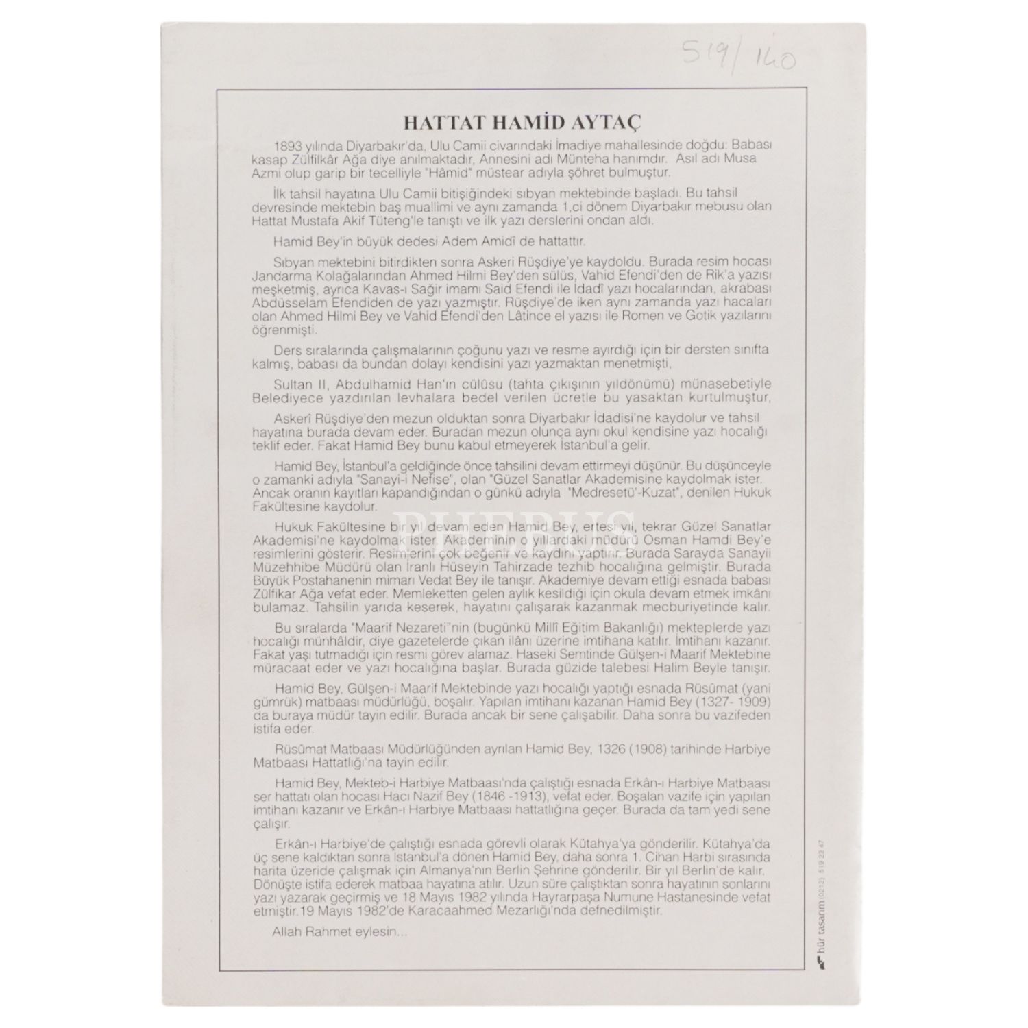 Sülüs-nesih meşk, çerçeve içi ölçü: 25x18 cm...
