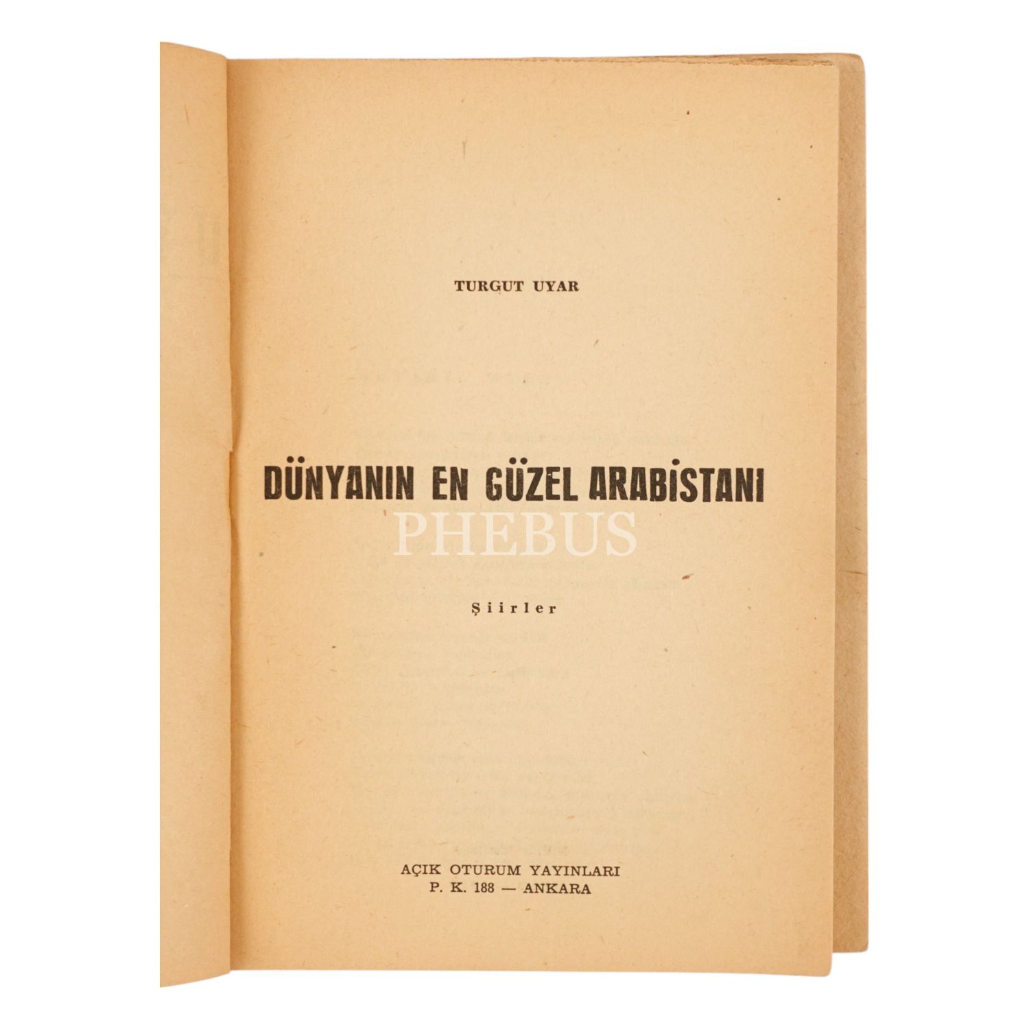 DÜNYANIN EN GÜZEL ARABİSTANI, Turgut Uyar, 1959, Açık Oturum Yayınları, 76 sayfa, 14x20 cm...