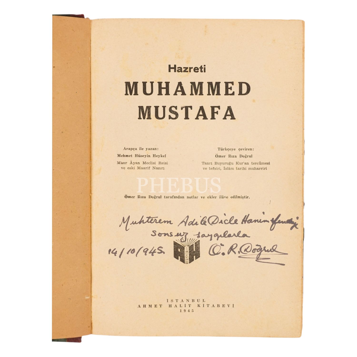 HAZRETİ MUHAMMED MUSTAFA, Mehmet Hüseyin Heykel, (çeviren: Ömer Rıza Doğrul), 1945, Ahmet Halit Kitabevi, 400 sayfa, 17x25 cm...