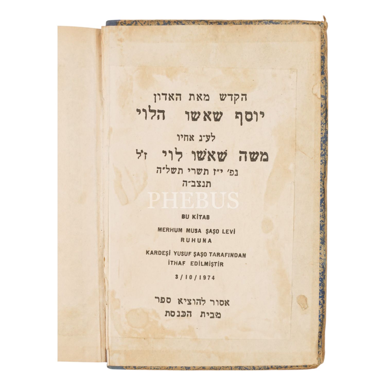 Kapak İçinde Kitabın Merhum Moshe Saşo Levi Ruhuna Kardeşi Yusuf Saşo Tarafından 3/10/1974 Tarihinde İthaf Edildiği Yazılı Etiket Yapıştırılmıştır. Haham Rashi ve Onkalus Yorumlu ve Değerli Hahamları İzahatleri ve Haftarah İçerir. Karton cildinde